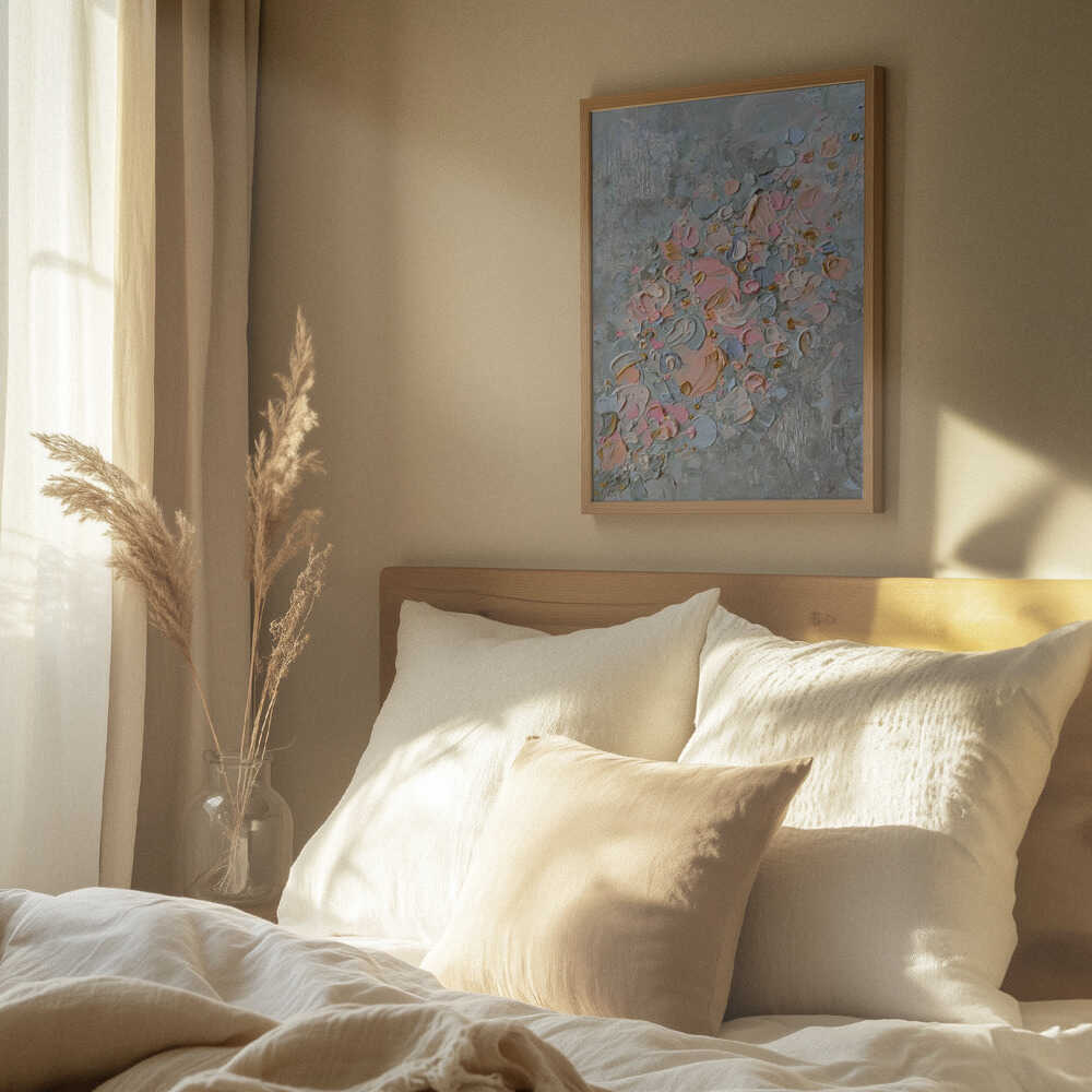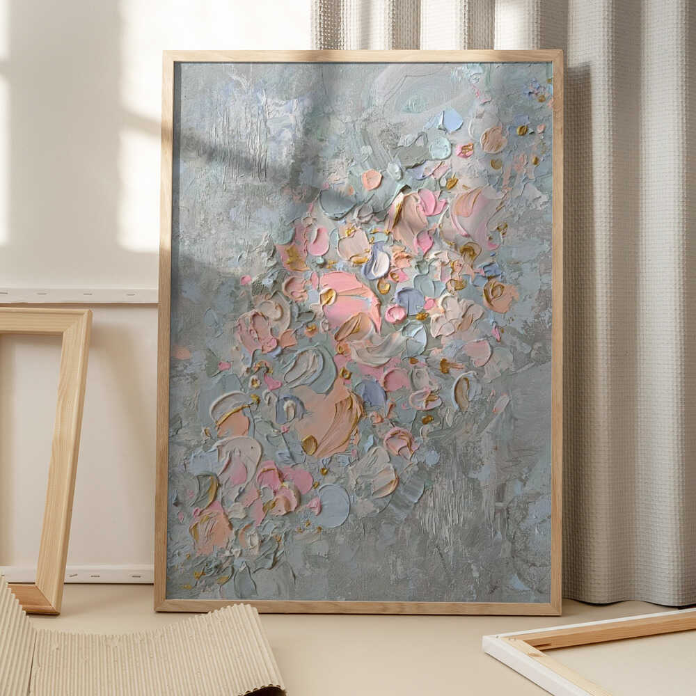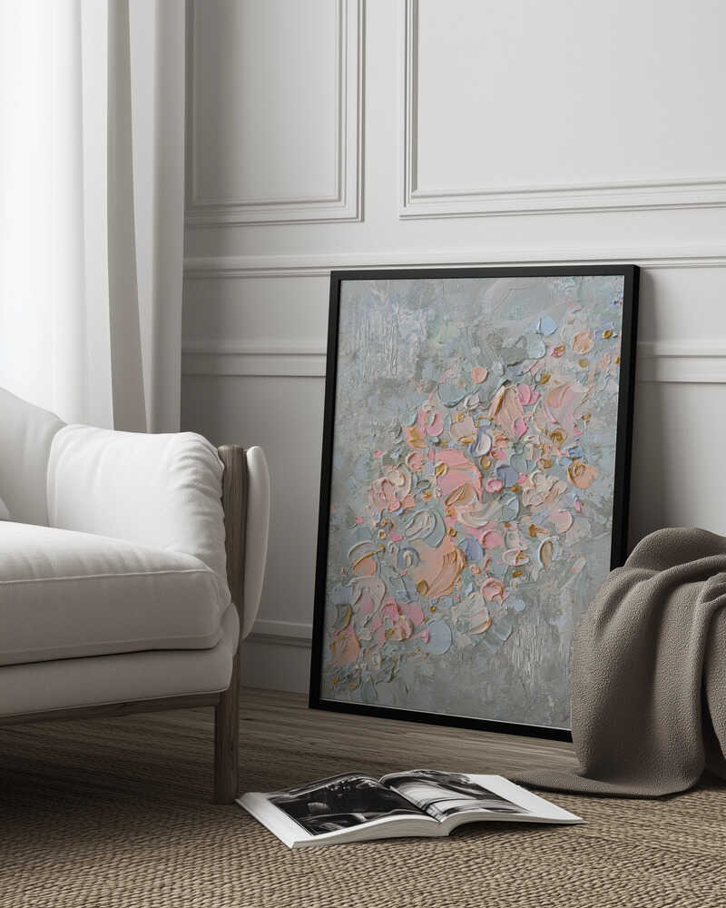 Tabloul înramat „Bloom”, creat de Anastasiya Devochkina, este disponibil în mai multe dimensiuni, cu ramă neagră, albă sau din lemn natur. Se potrivește perfect în orice încăpere.