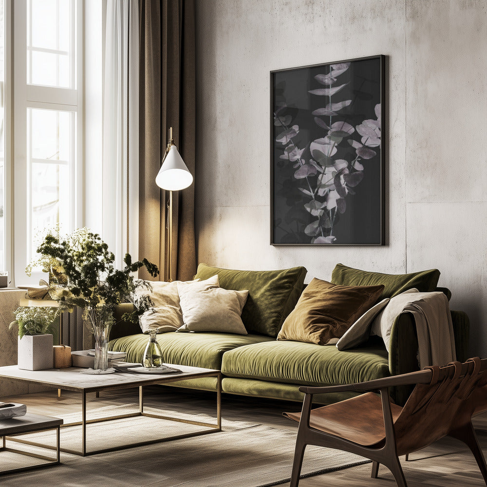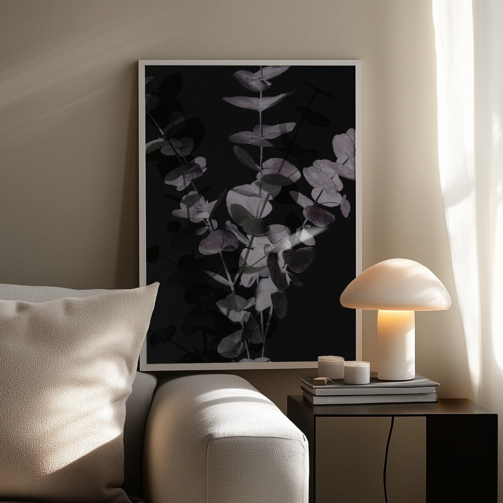 Tabloul înramat „Eucalyptus_Negative_001”, creat de Pictufy Studio III, este disponibil în mai multe dimensiuni, cu ramă neagră, albă sau din lemn natur. Se potrivește perfect în orice încăpere.