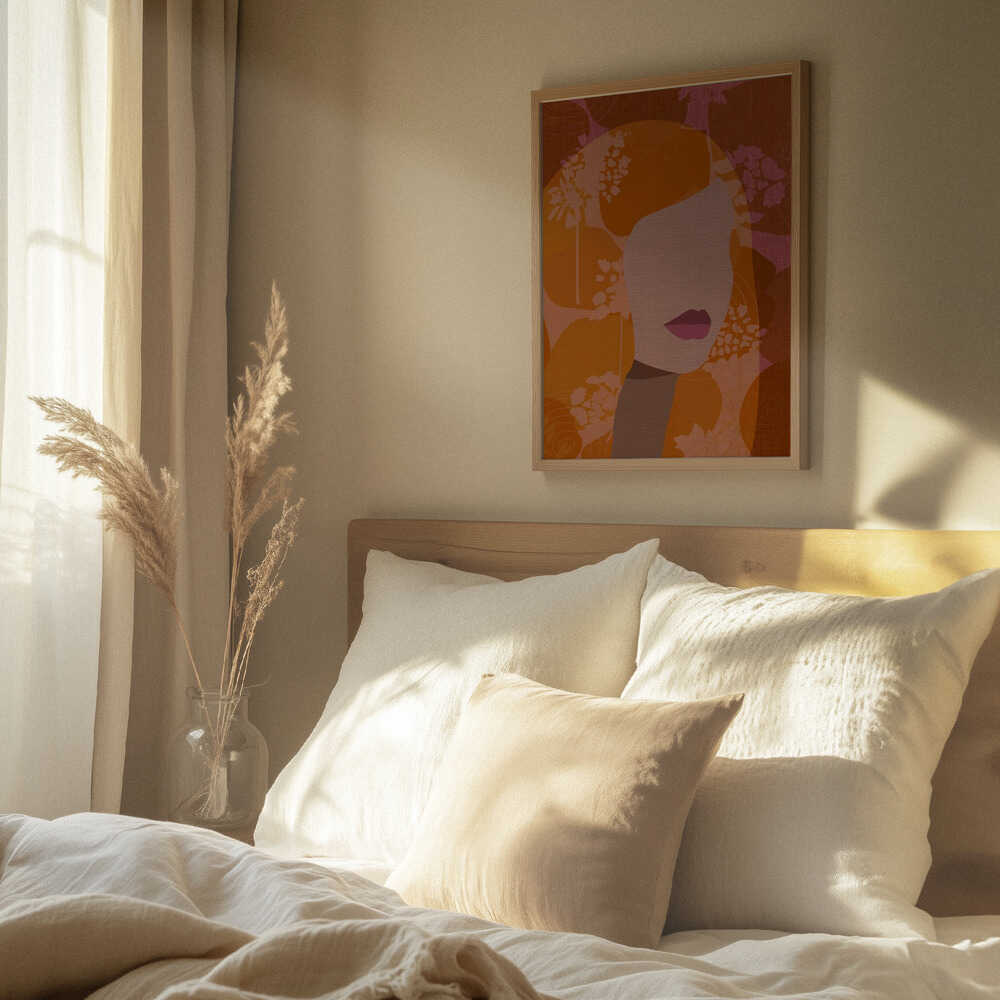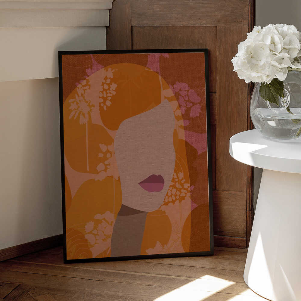 Tabloul înramat „Floral Silhouette”, creat de Dina Dankers, este disponibil în mai multe dimensiuni, cu ramă neagră, albă sau din lemn natur. Se potrivește perfect în orice încăpere.
