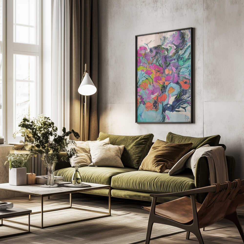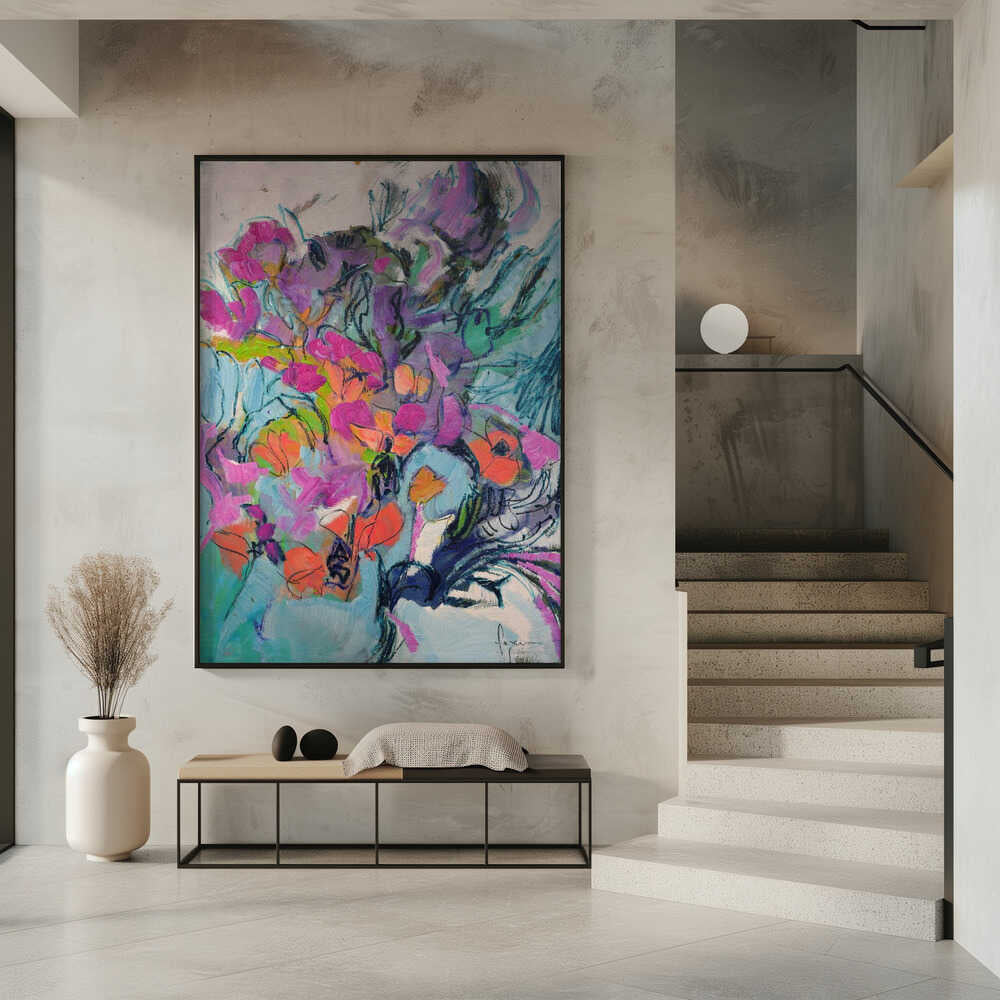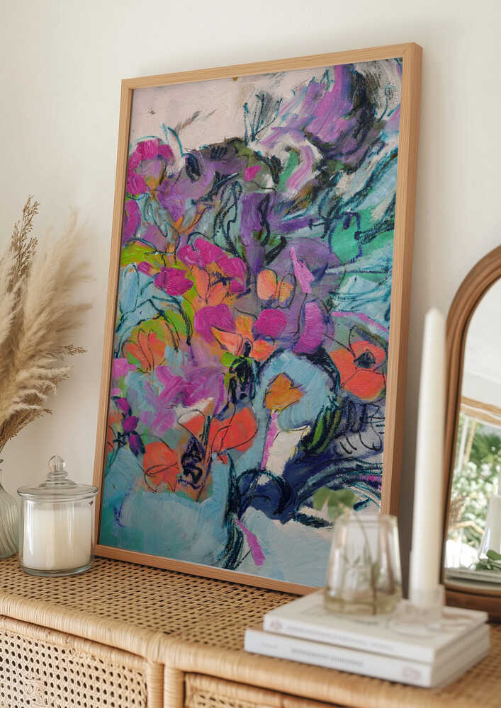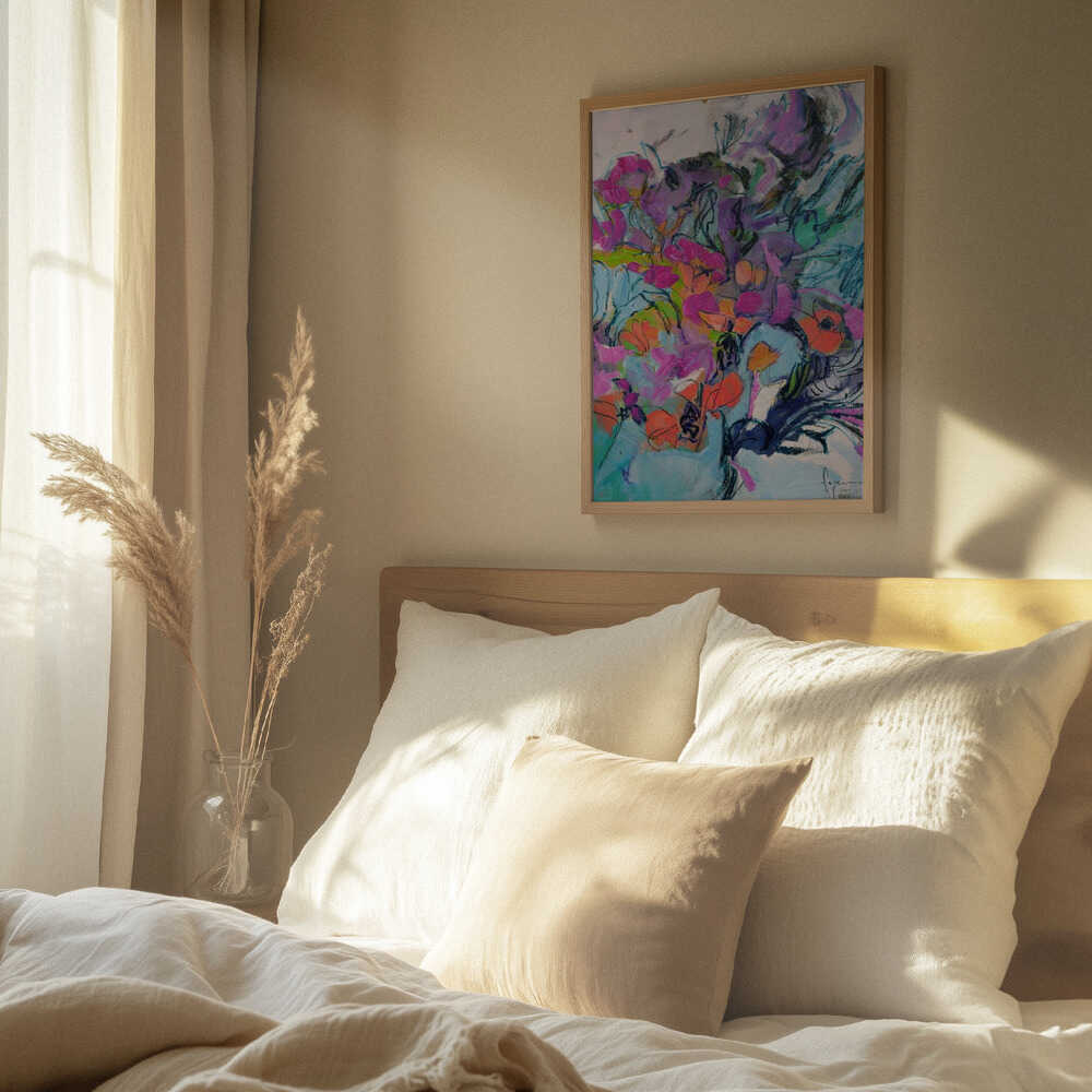 Tabloul înramat „Floral Symphony”, creat de Dorothy Fagan, este disponibil în mai multe dimensiuni, cu ramă neagră, albă sau din lemn natur. Se potrivește perfect în orice încăpere.