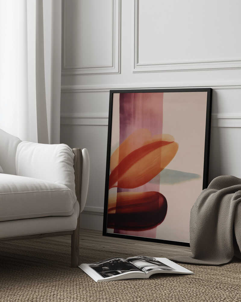 Tabloul înramat „Flowing Petals”, creat de Treechild, este disponibil în mai multe dimensiuni, cu ramă neagră, albă sau din lemn natur. Se potrivește perfect în orice încăpere.