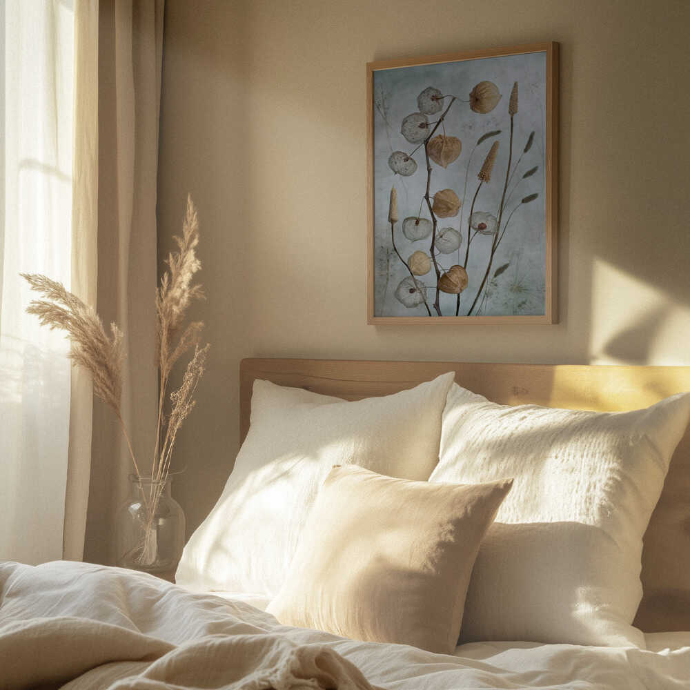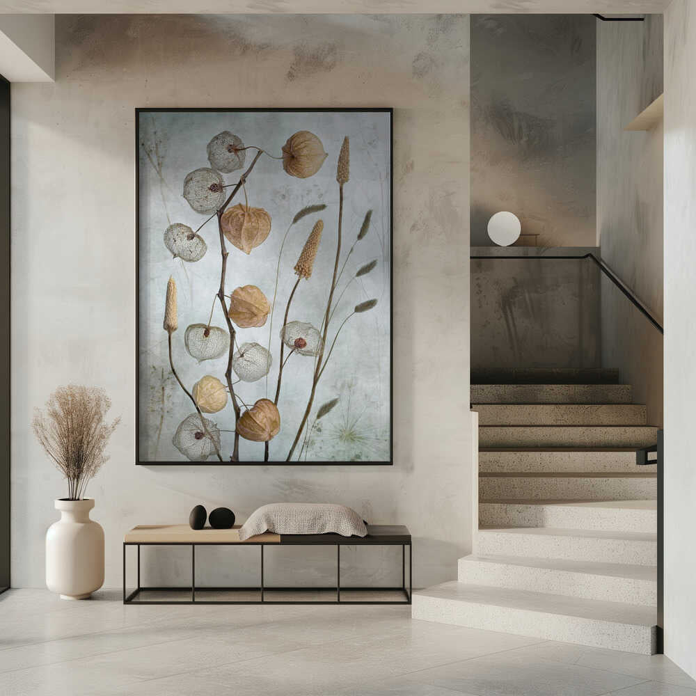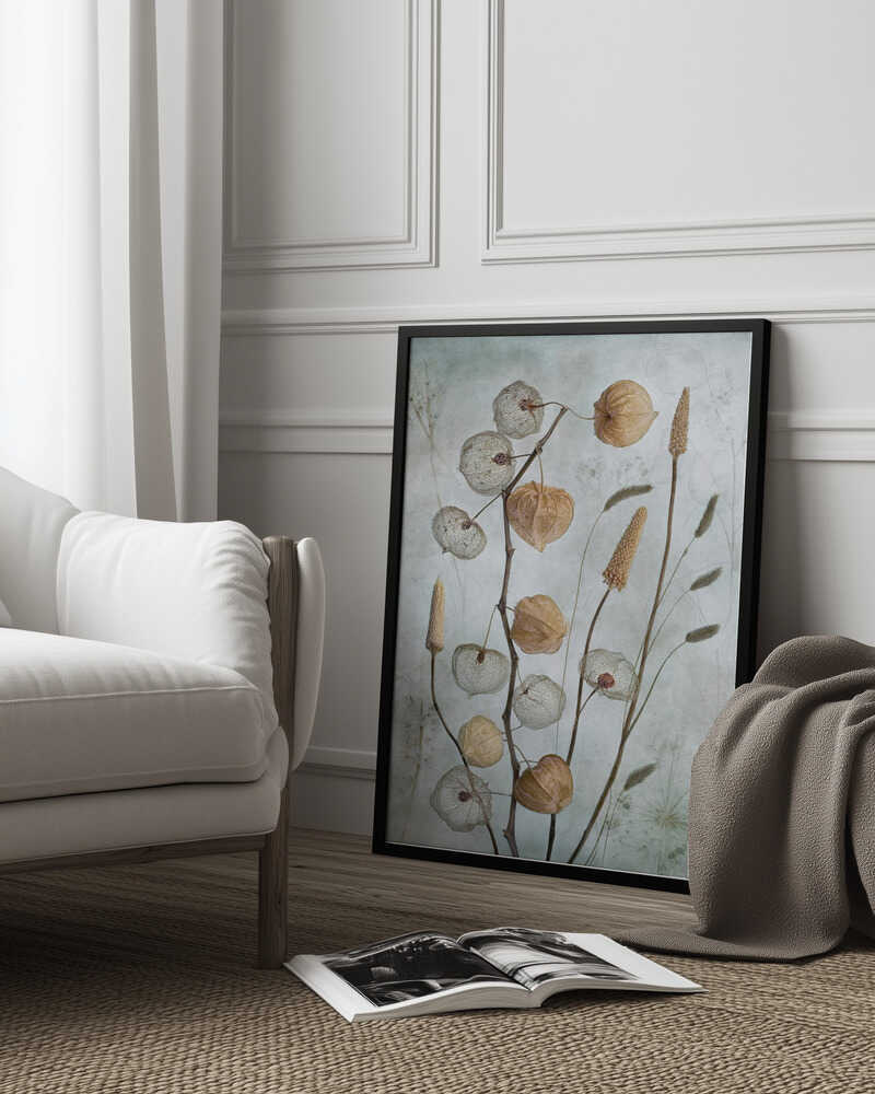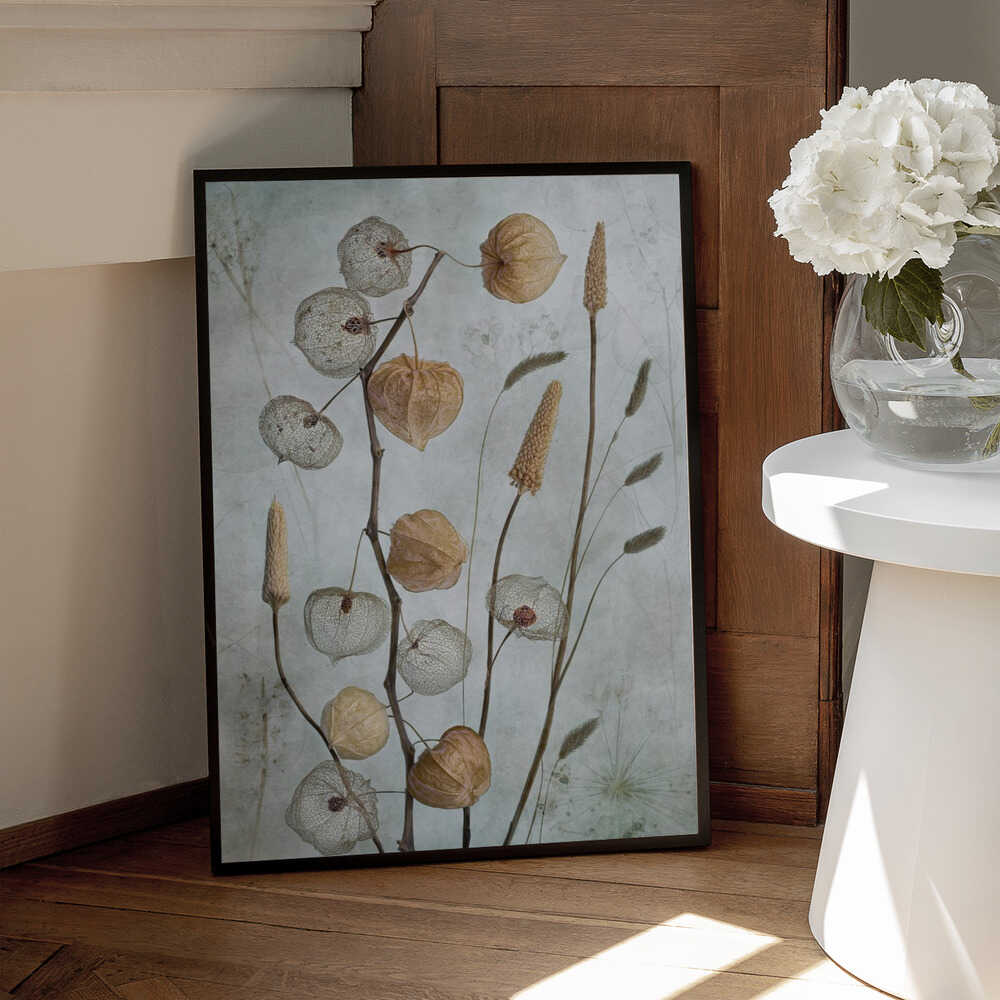 Tabloul înramat „Lanterns*”, creat de Mandy Disher, este disponibil în mai multe dimensiuni, cu ramă neagră, albă sau din lemn natur. Se potrivește perfect în orice încăpere.