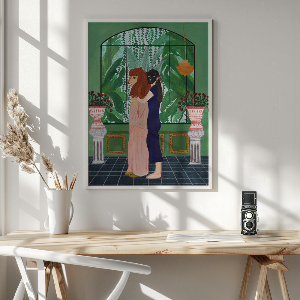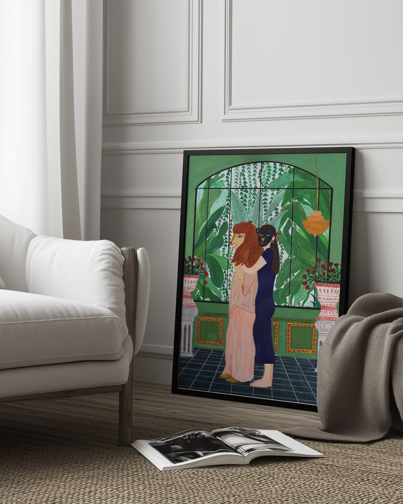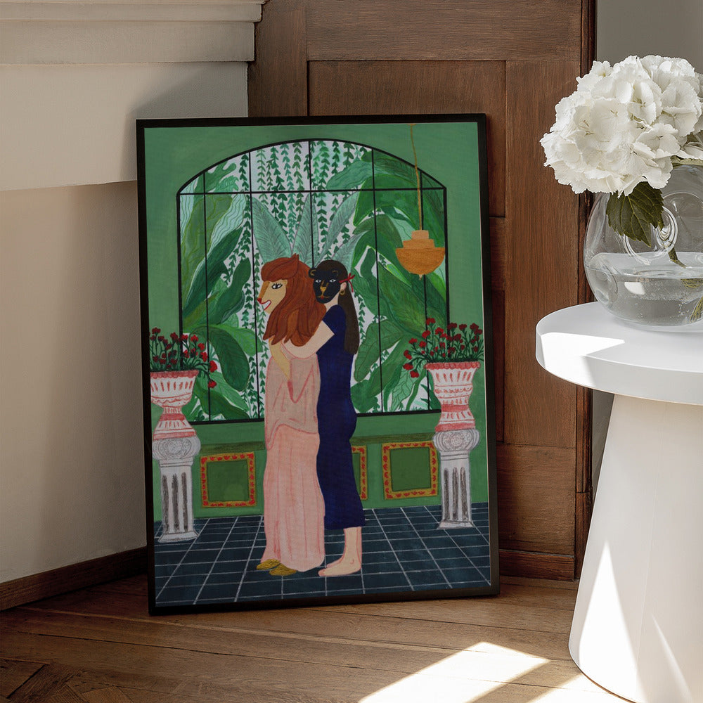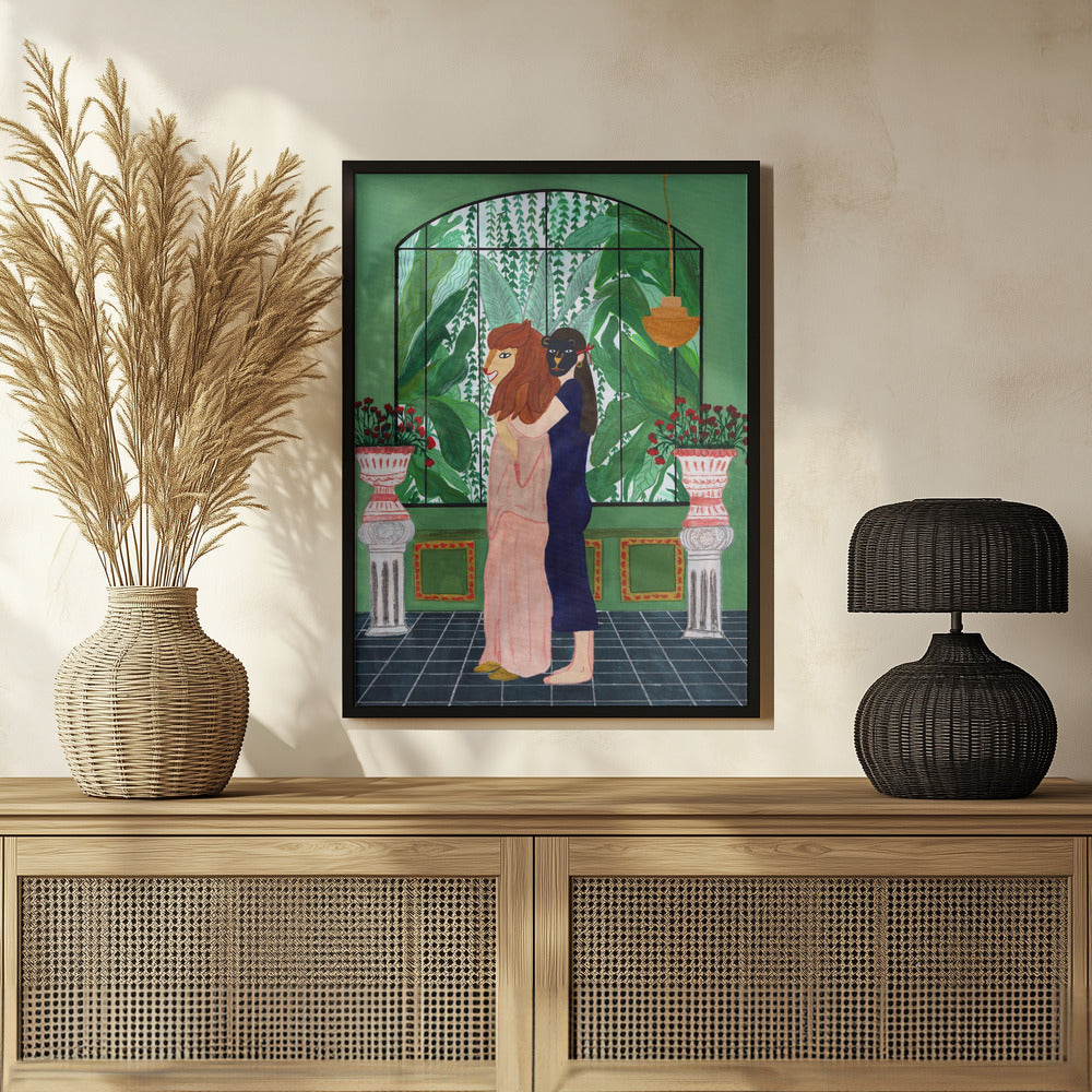 Tabloul înramat „Lion Mom”, creat de Jota de jai, este disponibil în mai multe dimensiuni, cu ramă neagră, albă sau din lemn natur. Se potrivește perfect în orice încăpere.