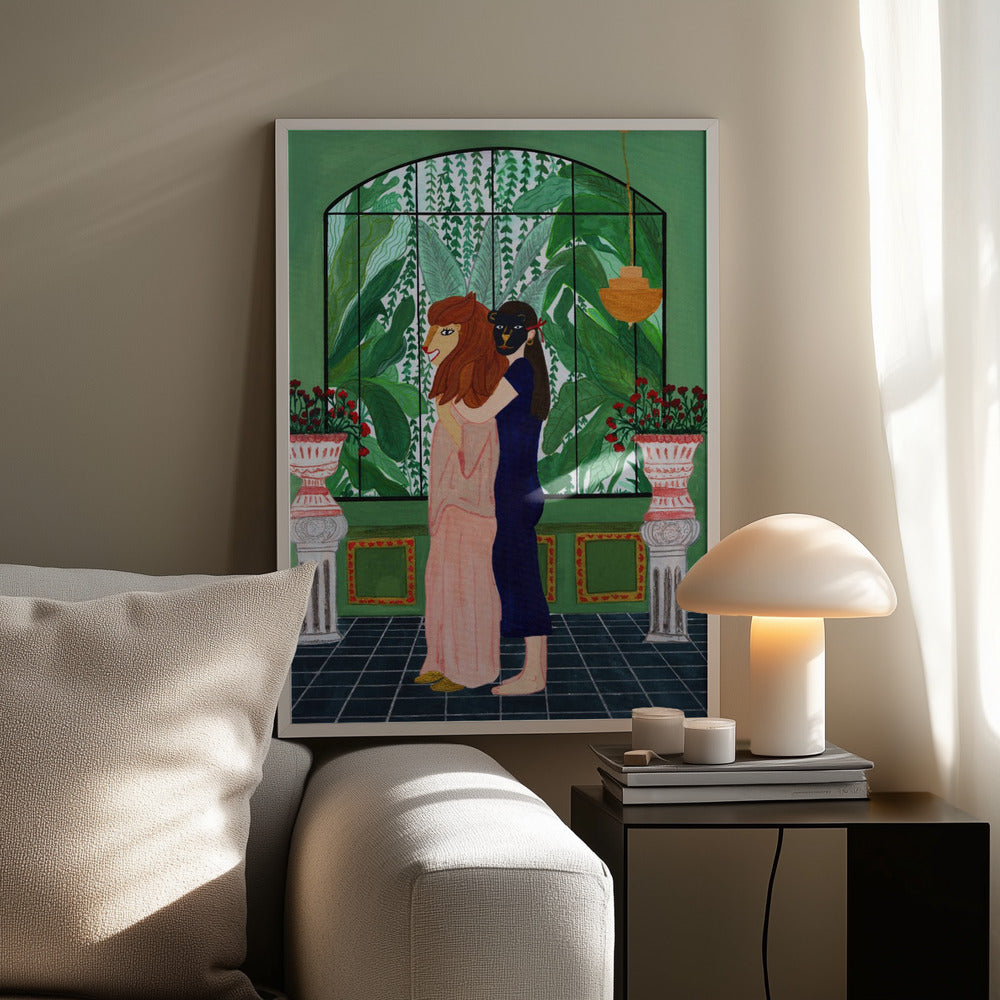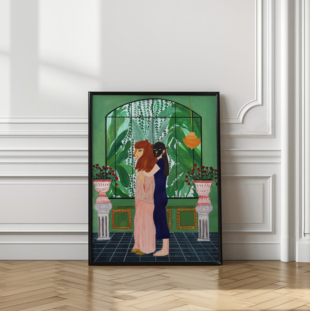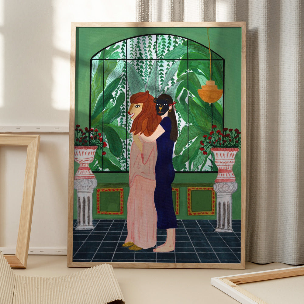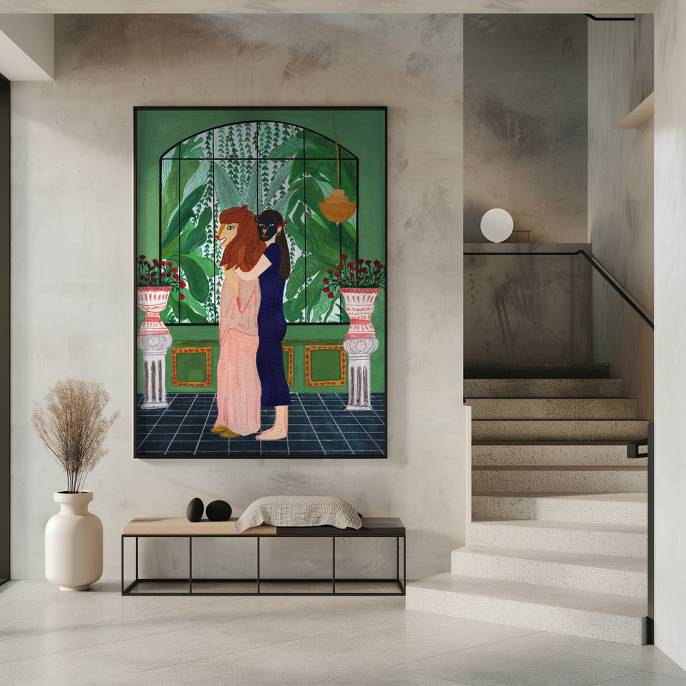 Tabloul înramat „Lion Mom”, creat de Jota de jai, este disponibil în mai multe dimensiuni, cu ramă neagră, albă sau din lemn natur. Se potrivește perfect în orice încăpere.