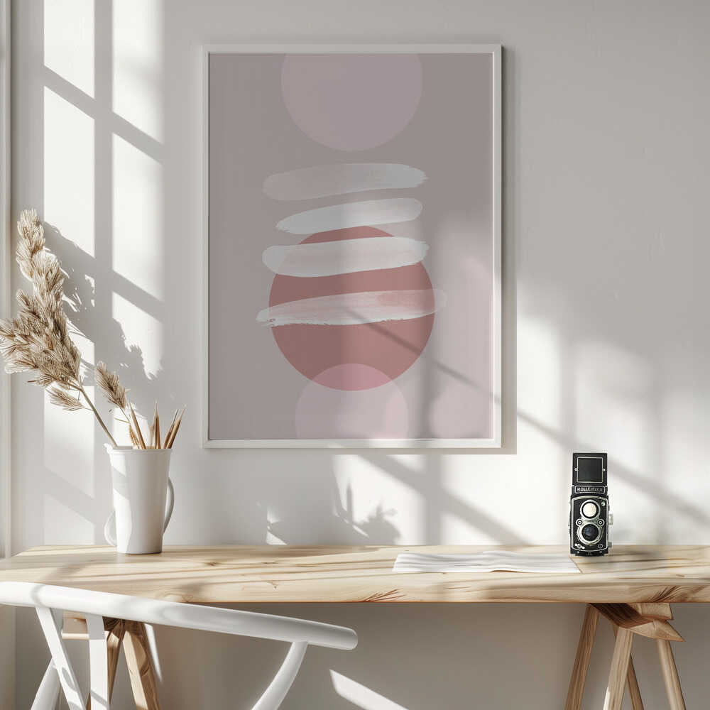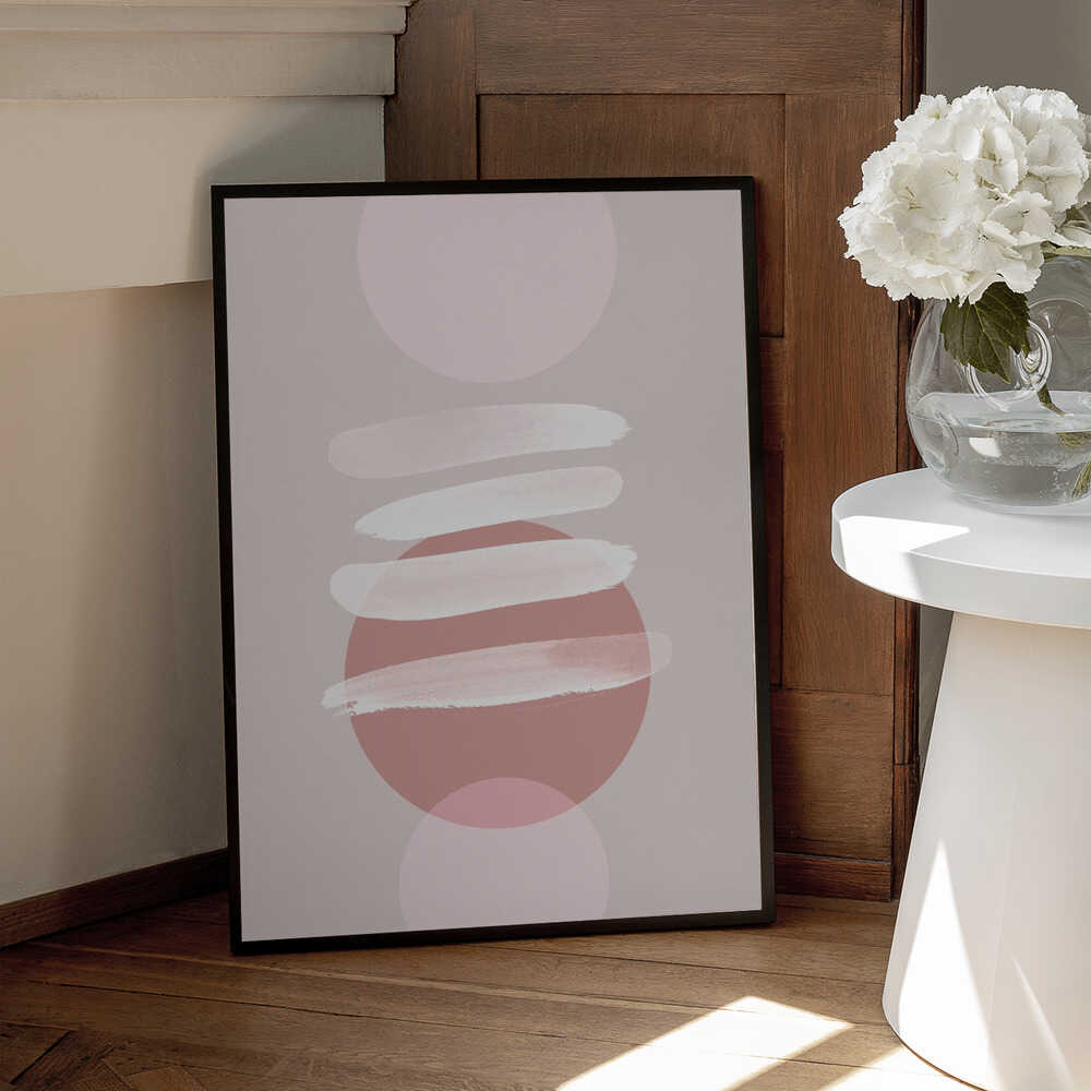Tabloul înramat „Minimalism 18”, creat de Mareike Böhmer, este disponibil în mai multe dimensiuni, cu ramă neagră, albă sau din lemn natur. Se potrivește perfect în orice încăpere.
