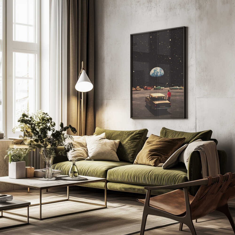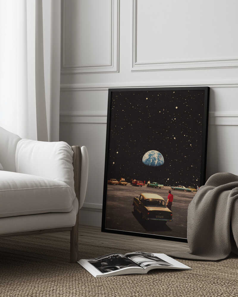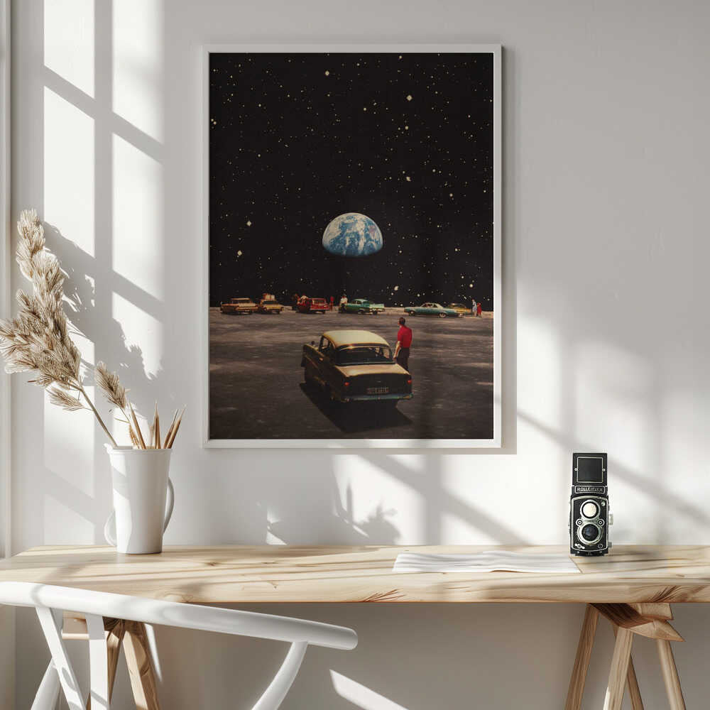 Tabloul înramat „Missing Home”, creat de Taudalpoi, este disponibil în mai multe dimensiuni, cu ramă neagră, albă sau din lemn natur. Se potrivește perfect în orice încăpere.