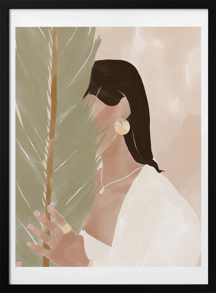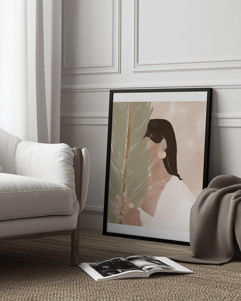 Tabloul înramat „Plant Girl”, creat de Ivy Green Illustrations, este disponibil în mai multe dimensiuni, cu ramă neagră, albă sau din lemn natur. Se potrivește perfect în orice încăpere.