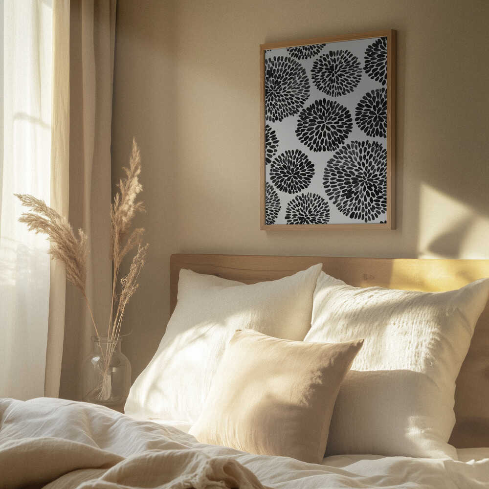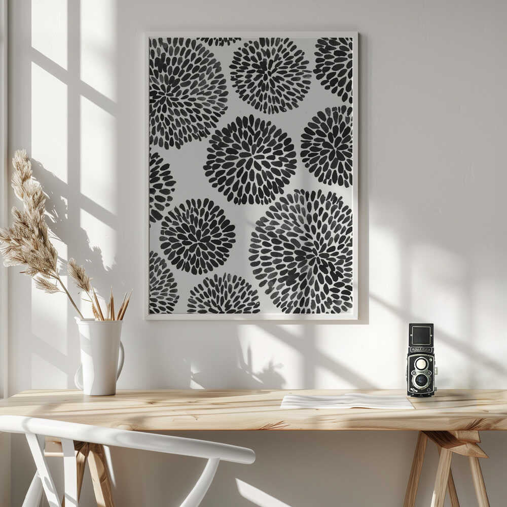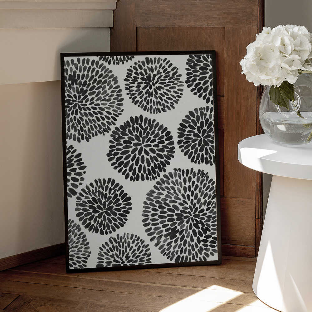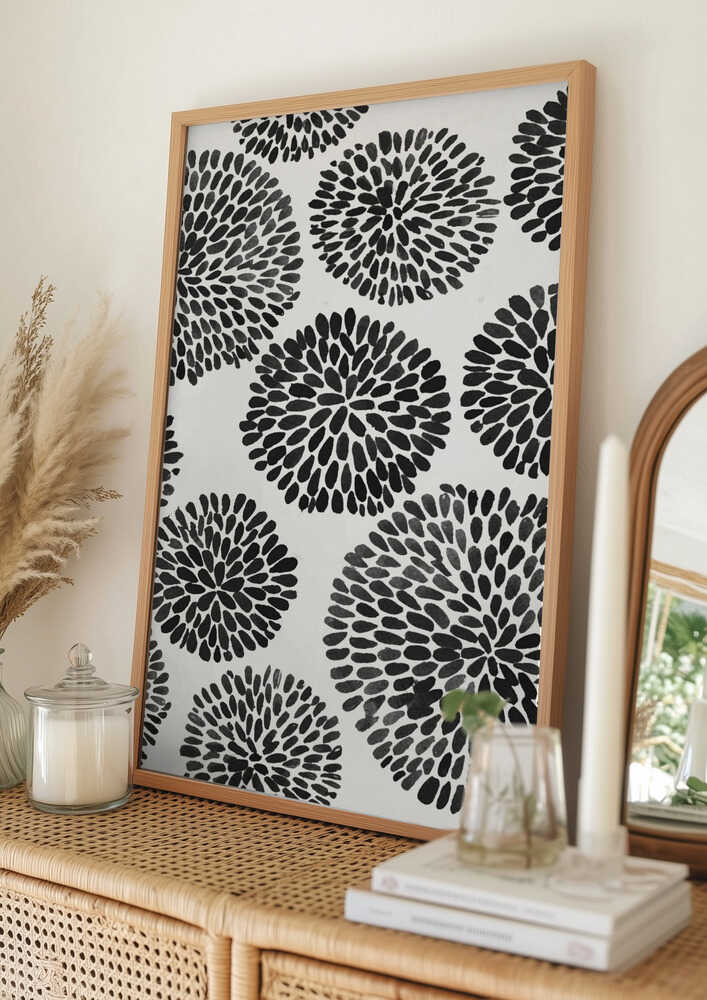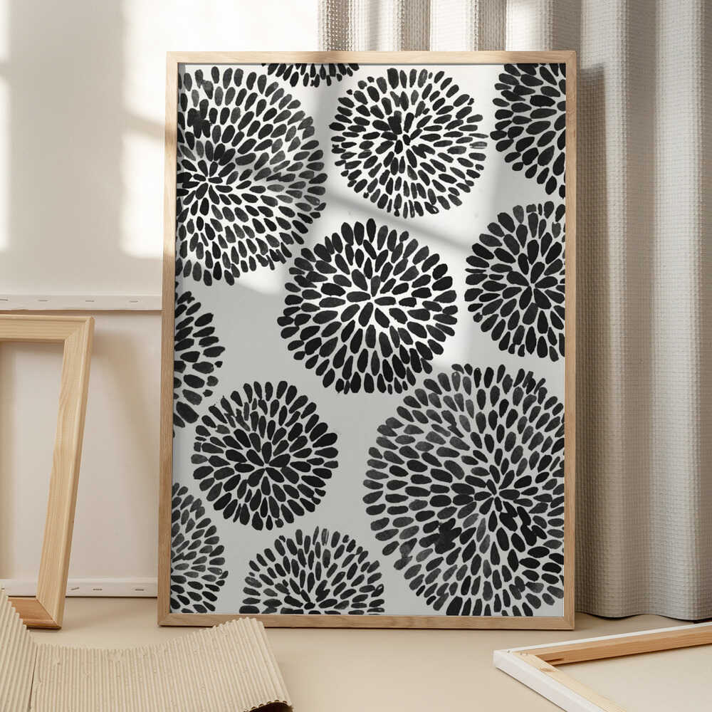 Tabloul înramat „SANTAN”, creat de Fun Qui, este disponibil în mai multe dimensiuni, cu ramă neagră, albă sau din lemn natur. Se potrivește perfect în orice încăpere.
