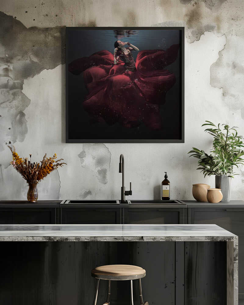 Tabloul înramat „The Lady in Red”, creat de Martha Suherman, este disponibil în mai multe dimensiuni, cu ramă neagră, albă sau din lemn natur. Se potrivește perfect în orice încăpere.