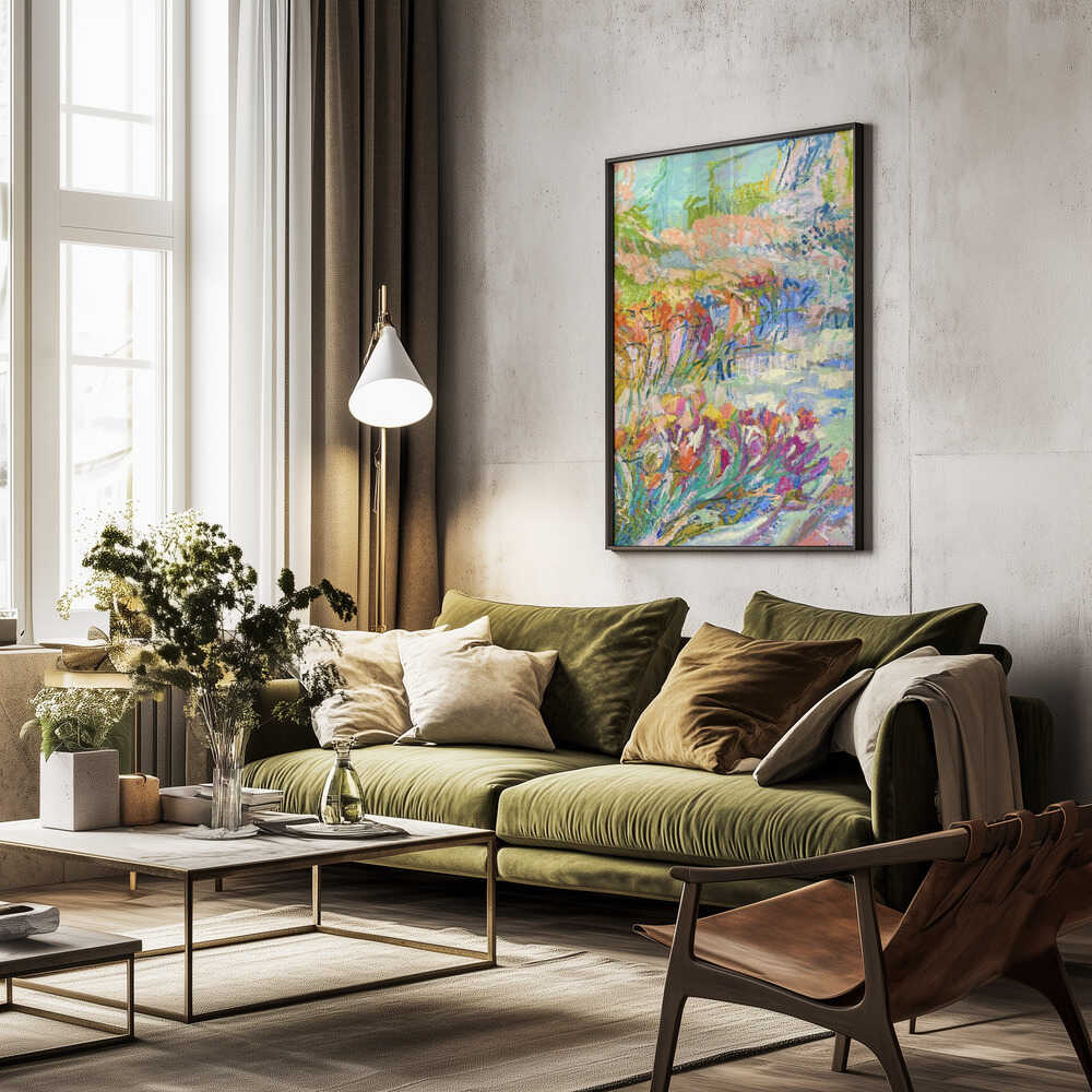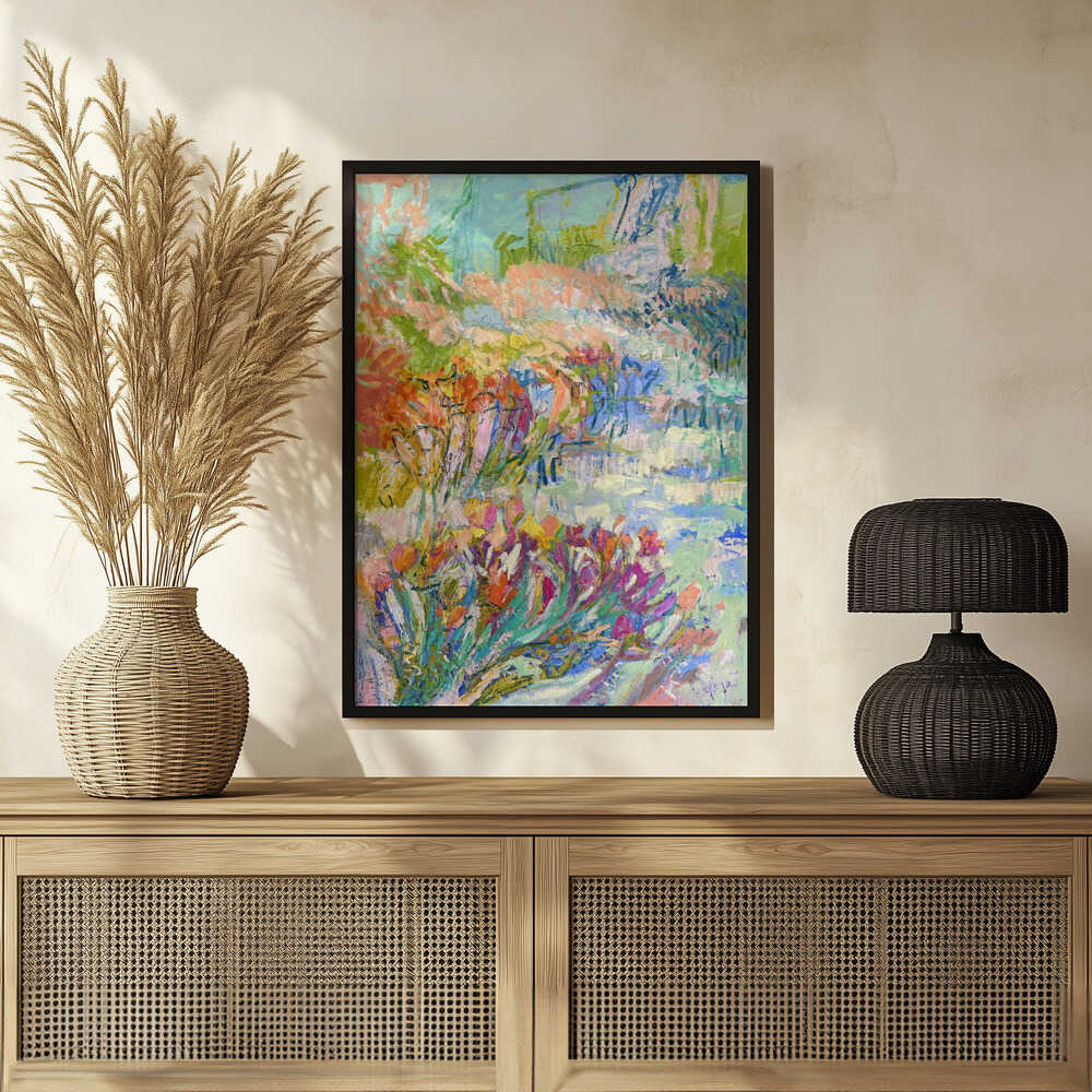 Tabloul înramat „Vibrant Garden Path”, creat de Dorothy Fagan, este disponibil în mai multe dimensiuni, cu ramă neagră, albă sau din lemn natur. Se potrivește perfect în orice încăpere.