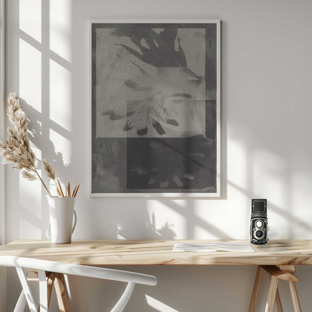 Tabloul înramat „Whispering Leaves – Abstract Pattern in Taupe and White”, creat de Dina Dankers, este disponibil în mai multe dimensiuni, cu ramă neagră, albă sau din lemn natur. Se potrivește perfect în orice încăpere.