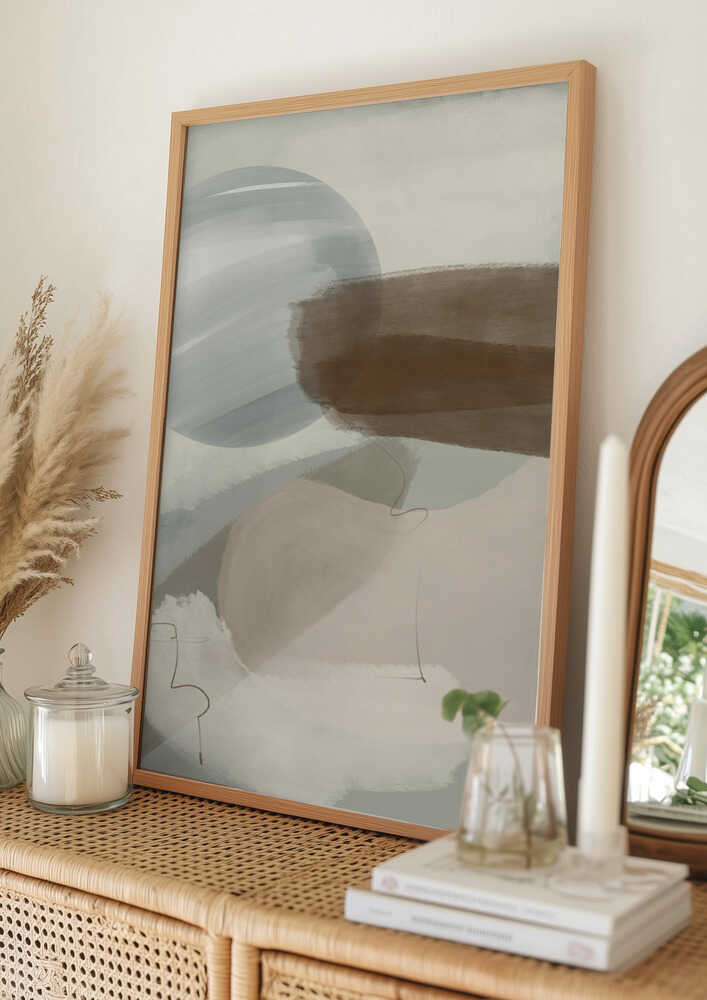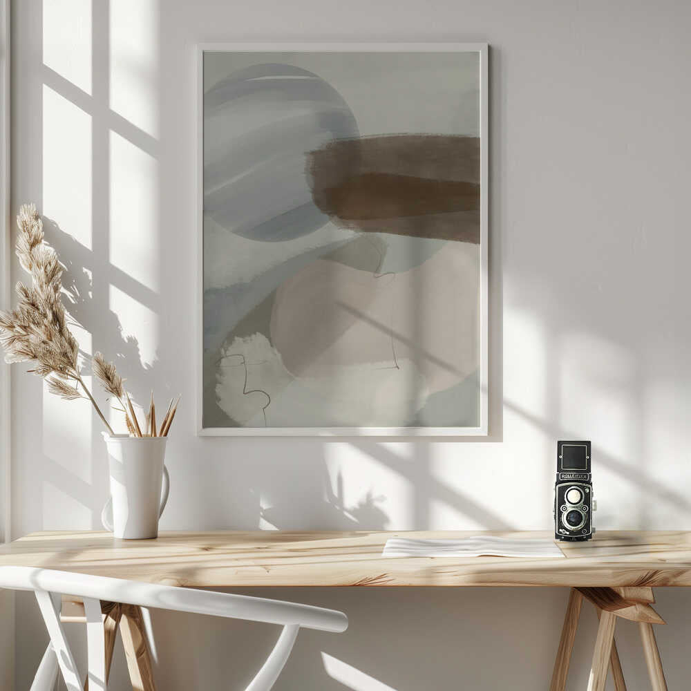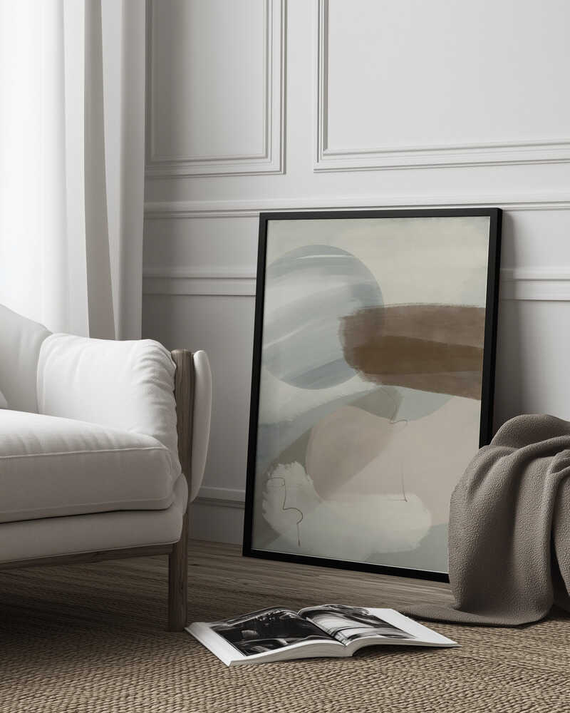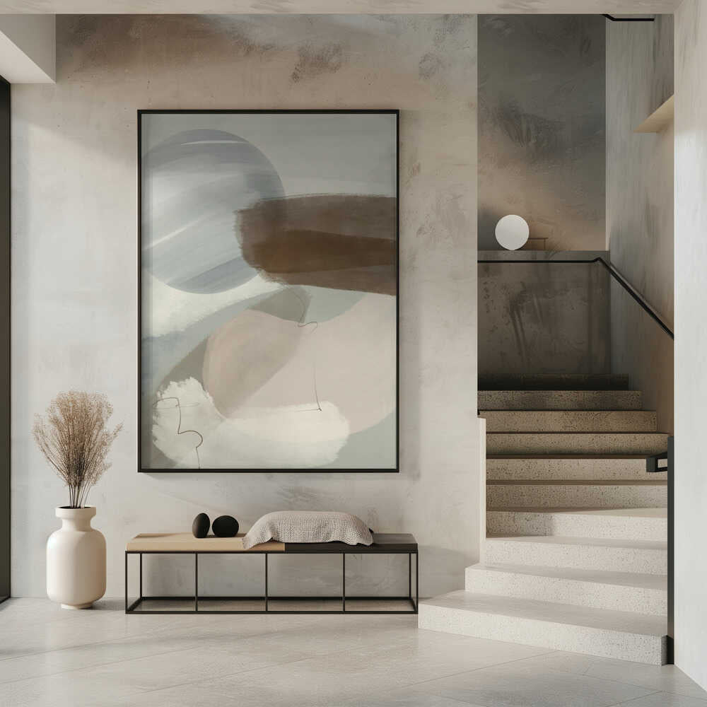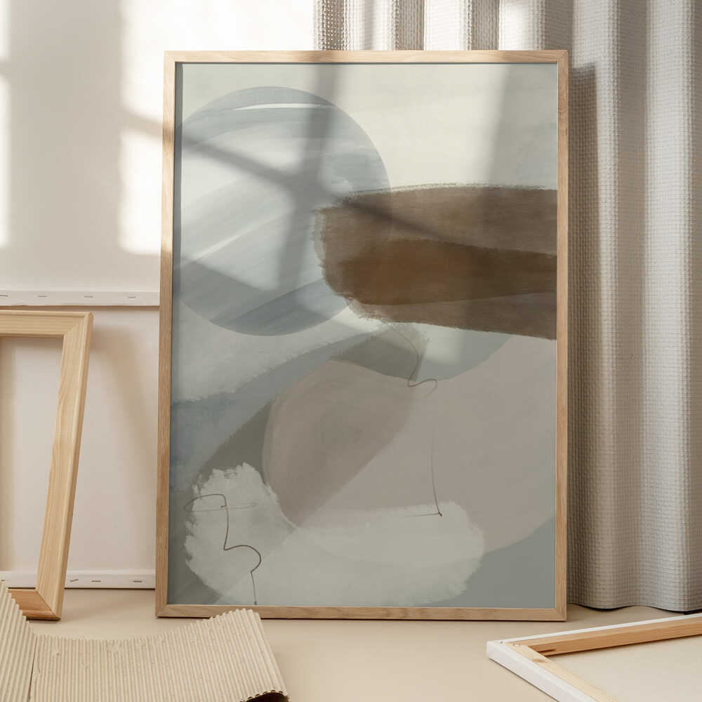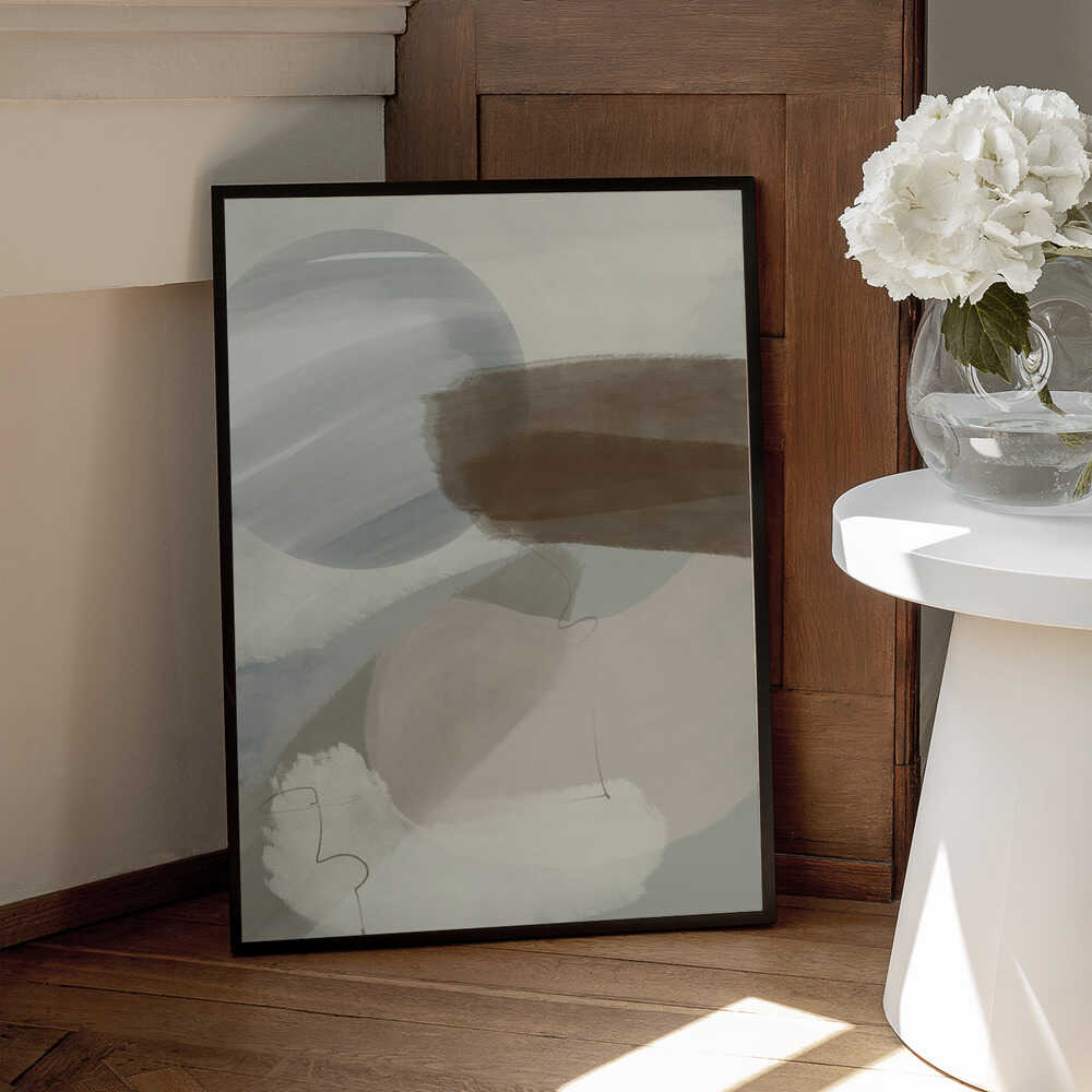 Tabloul înramat „Abstract 01”, creat de Nilesh Kulkarni, este disponibil în mai multe dimensiuni, cu ramă neagră, albă sau din lemn natur. Se potrivește perfect în orice încăpere.