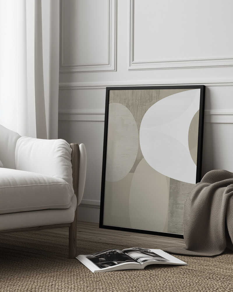 Tabloul înramat „Black White Neutral Shapes 1”, creat de cartissi, este disponibil în mai multe dimensiuni, cu ramă neagră, albă sau din lemn natur. Se potrivește perfect în orice încăpere.