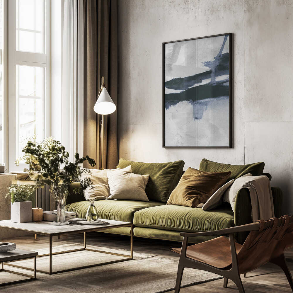 Tabloul înramat „Blu 1”, creat de Dan Hobday, este disponibil în mai multe dimensiuni, cu ramă neagră, albă sau din lemn natur. Se potrivește perfect în orice încăpere.