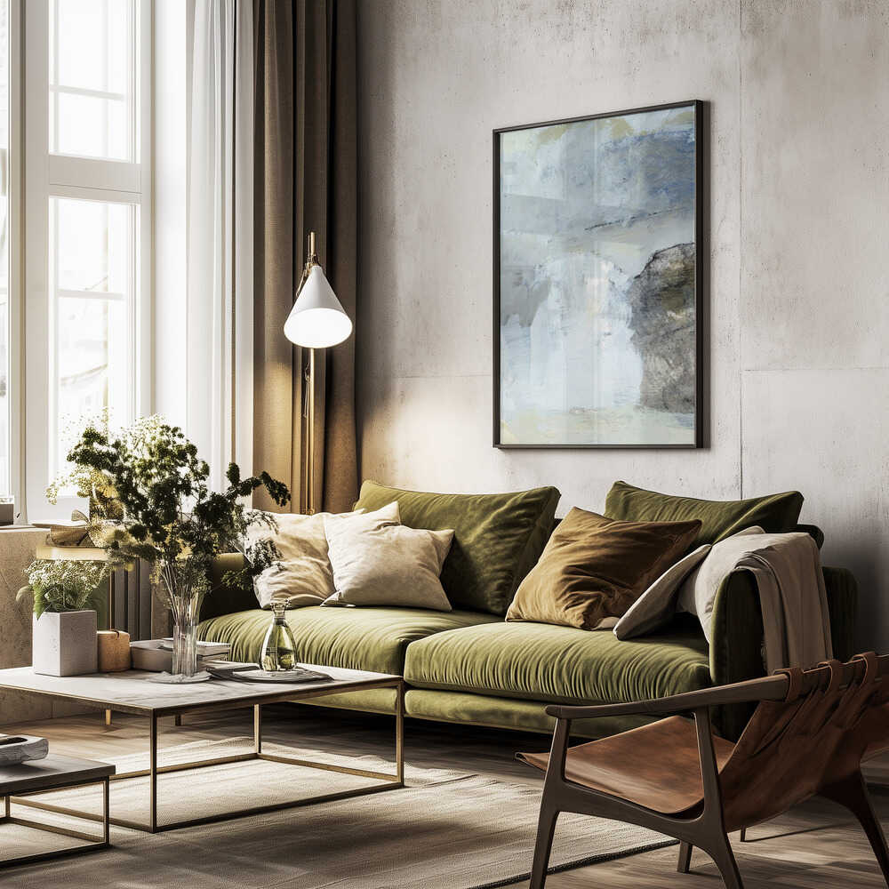 Tabloul înramat „Blue”, creat de Dan Hobday, este disponibil în mai multe dimensiuni, cu ramă neagră, albă sau din lemn natur. Se potrivește perfect în orice încăpere.