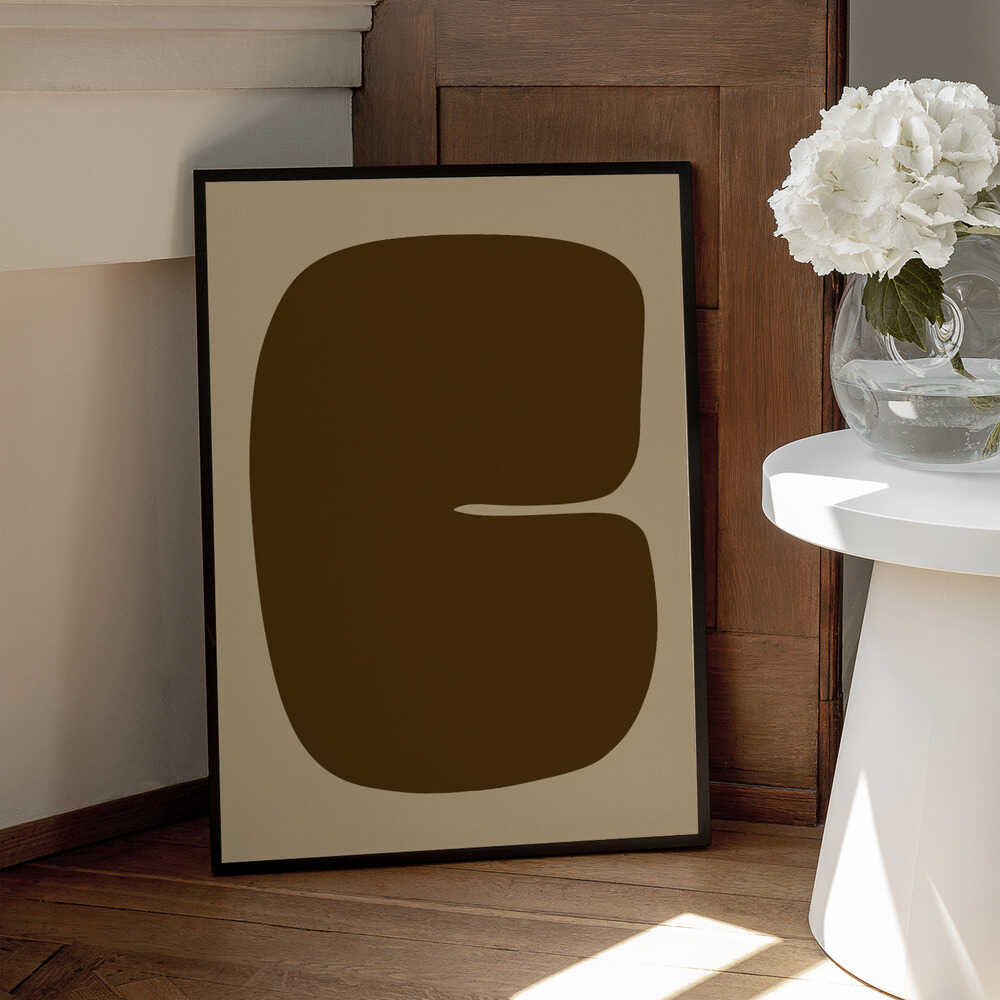 Tabloul înramat „Bold Brown Form”, creat de Treechild, este disponibil în mai multe dimensiuni, cu ramă neagră, albă sau din lemn natur. Se potrivește perfect în orice încăpere.