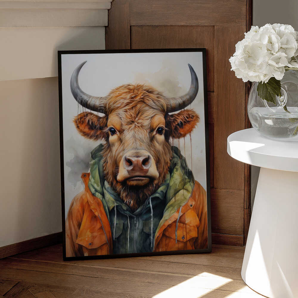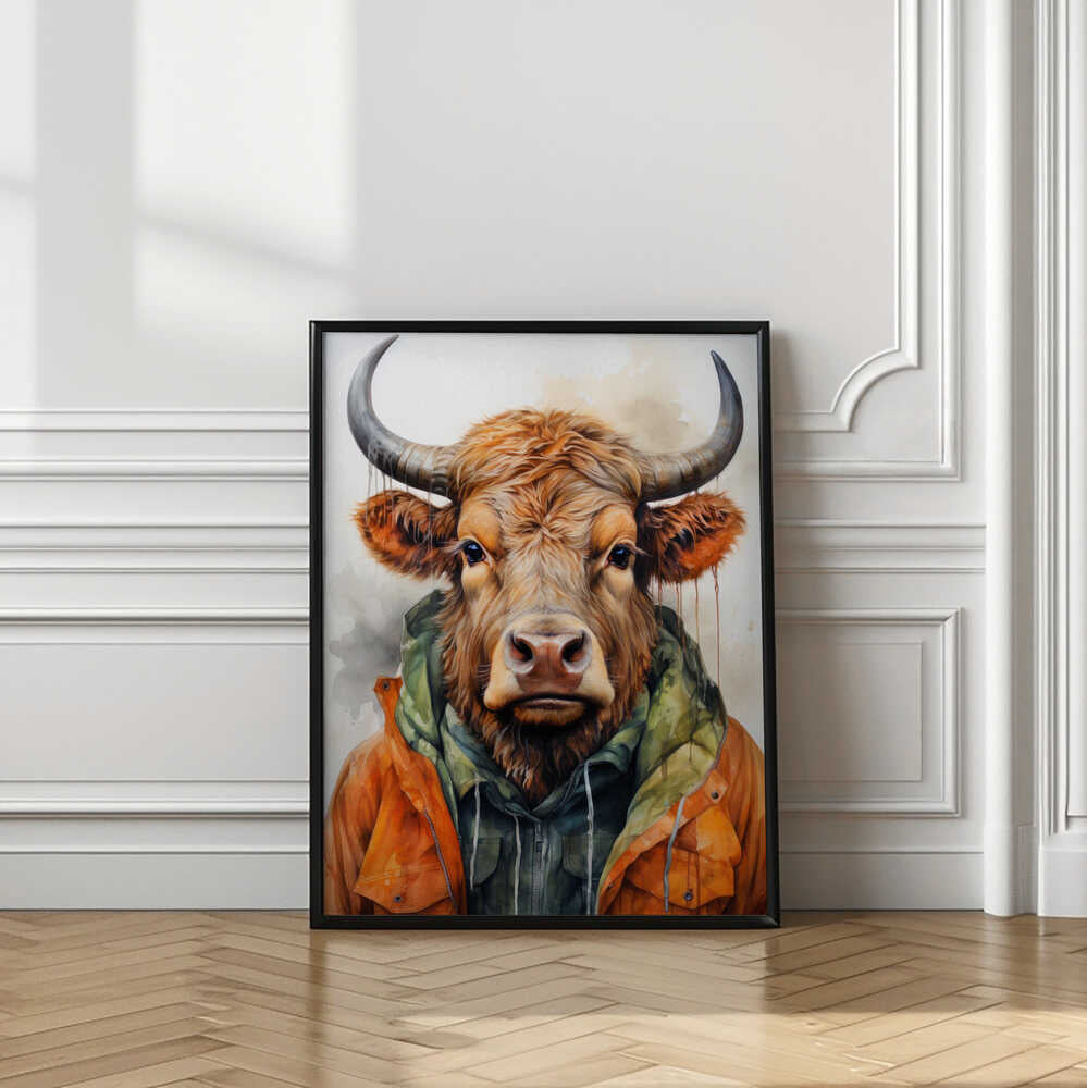 Tablou înramat „Buffalo Watercolor Animal Art (3)” de Justyna Jaszke