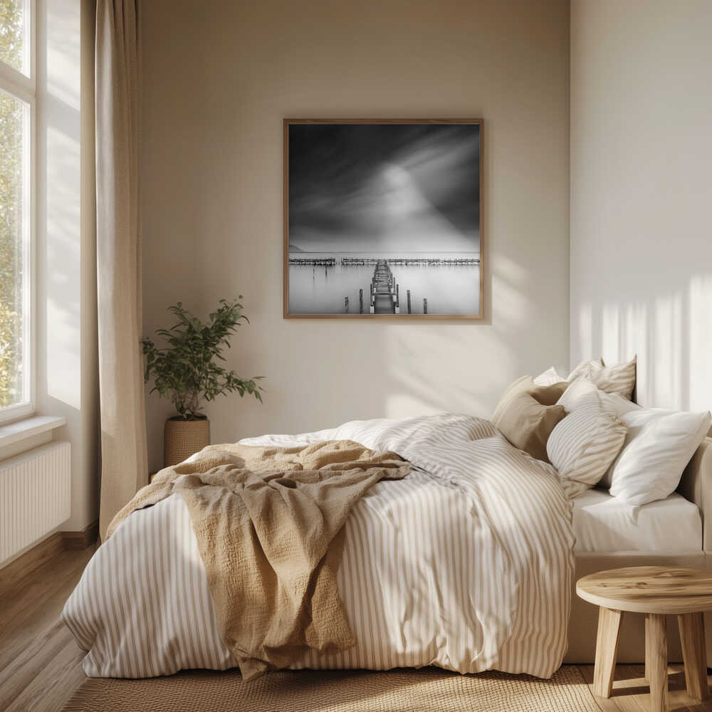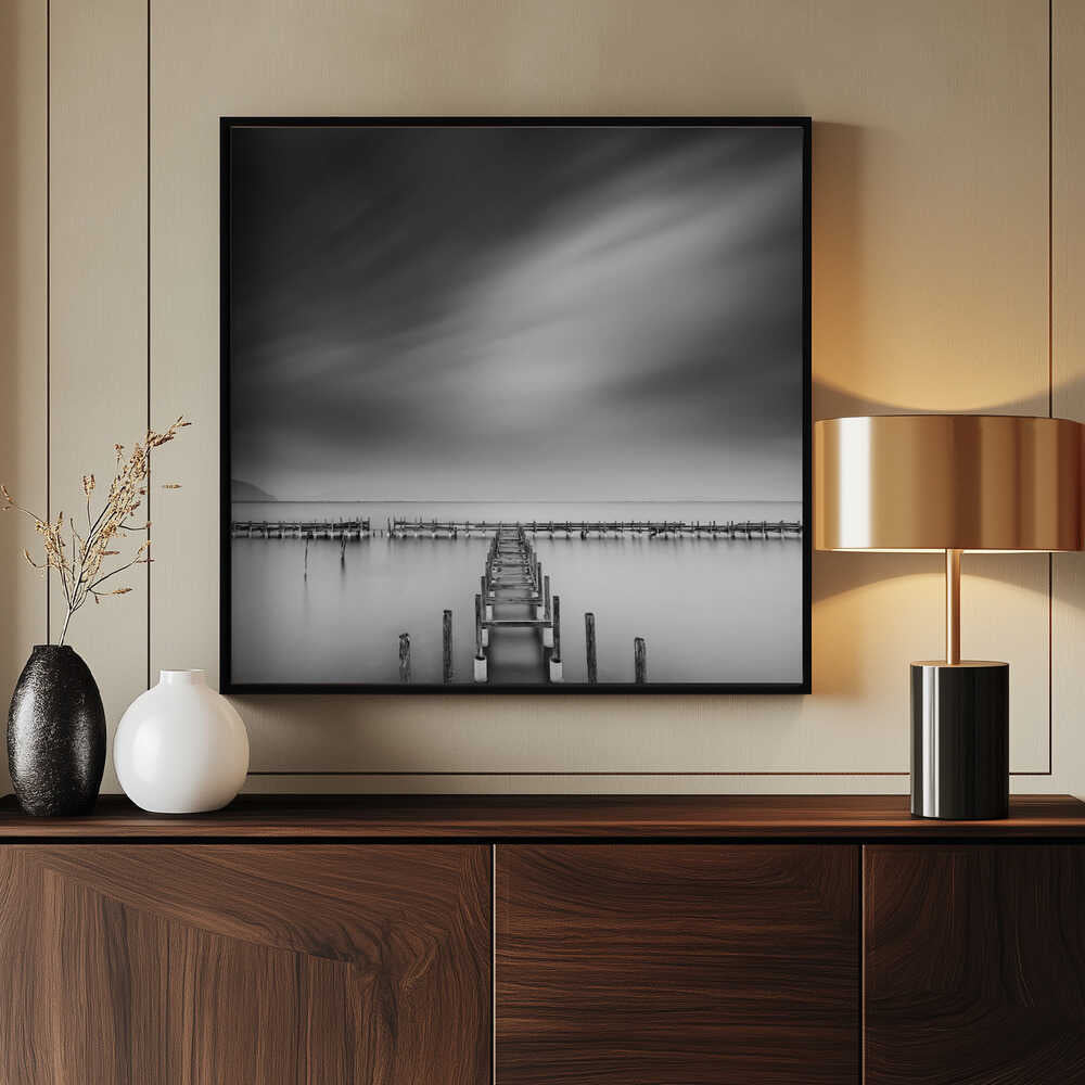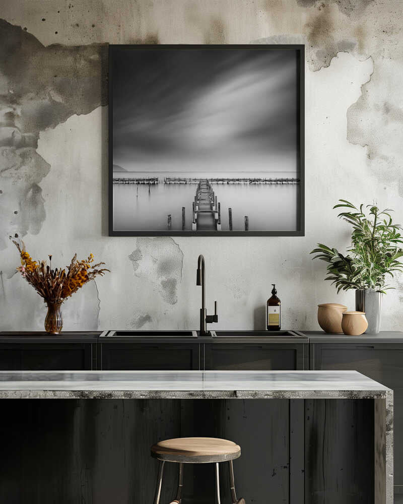 Tabloul înramat „By the Sea 012”, creat de George Digalakis, este disponibil în mai multe dimensiuni, cu ramă neagră, albă sau din lemn natur. Se potrivește perfect în orice încăpere.