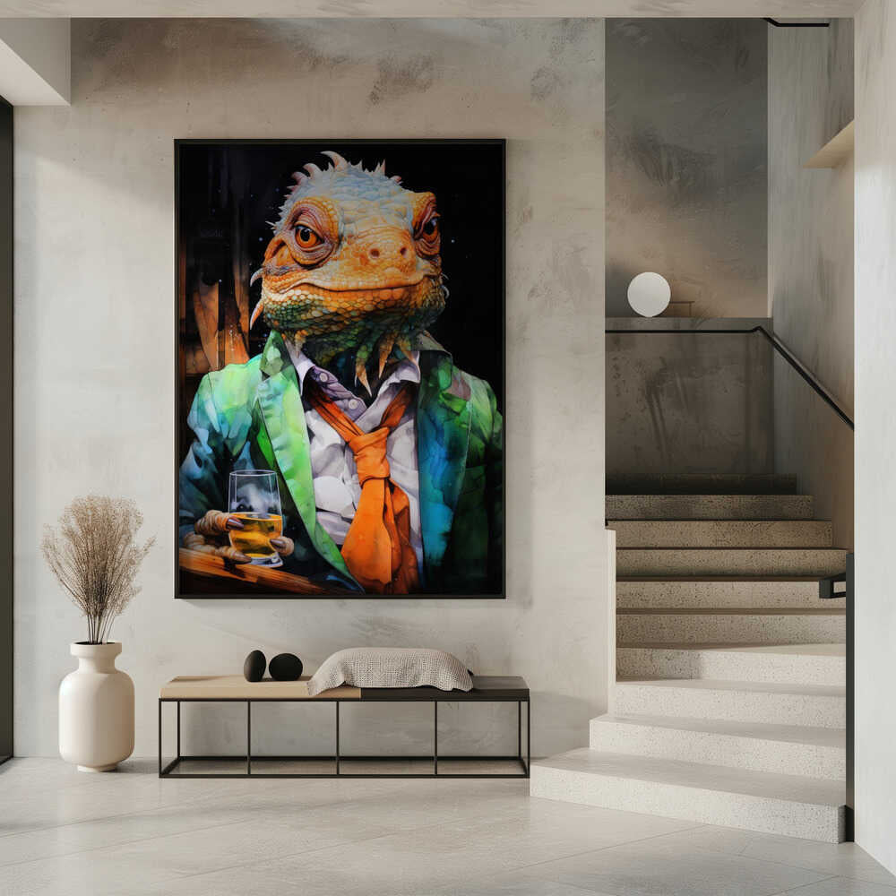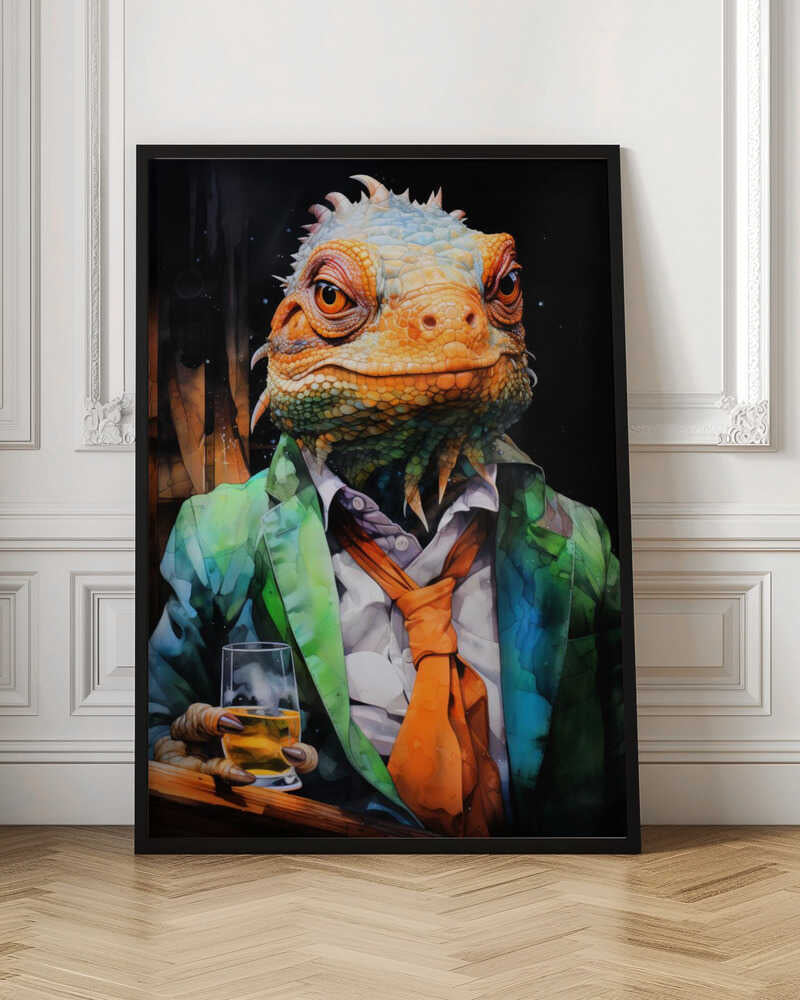Tablou înramat „Chameleon Watercolor Animal Art” de Justyna Jaszke