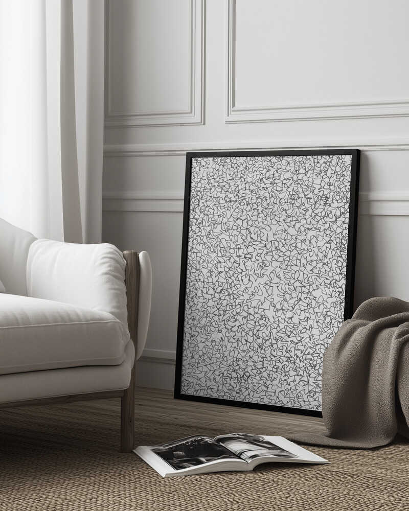 Tabloul înramat „Chaotic Whirlwind”, creat de Isabelle Brent, este disponibil în mai multe dimensiuni, cu ramă neagră, albă sau din lemn natur. Se potrivește perfect în orice încăpere.