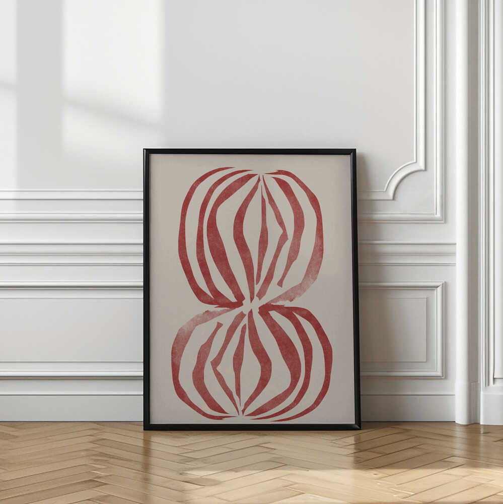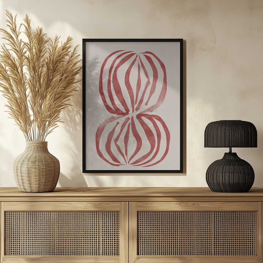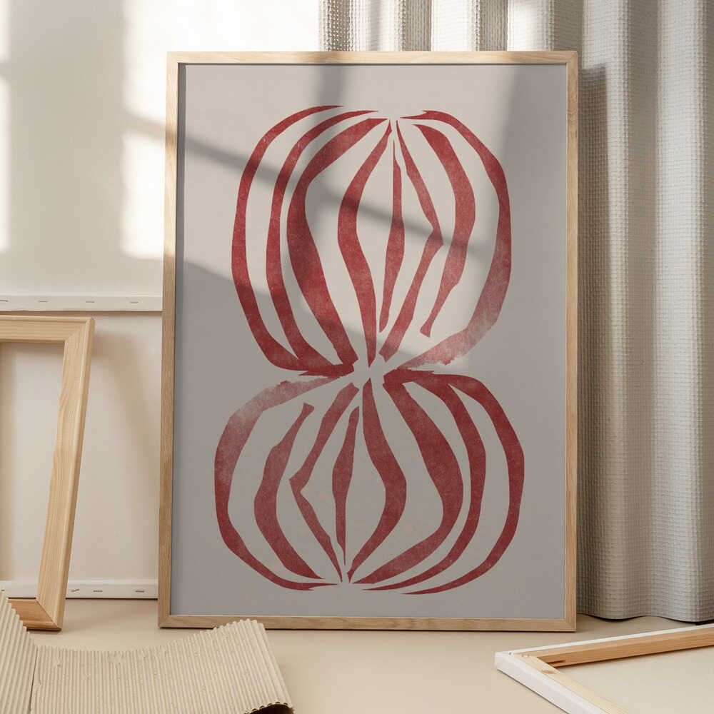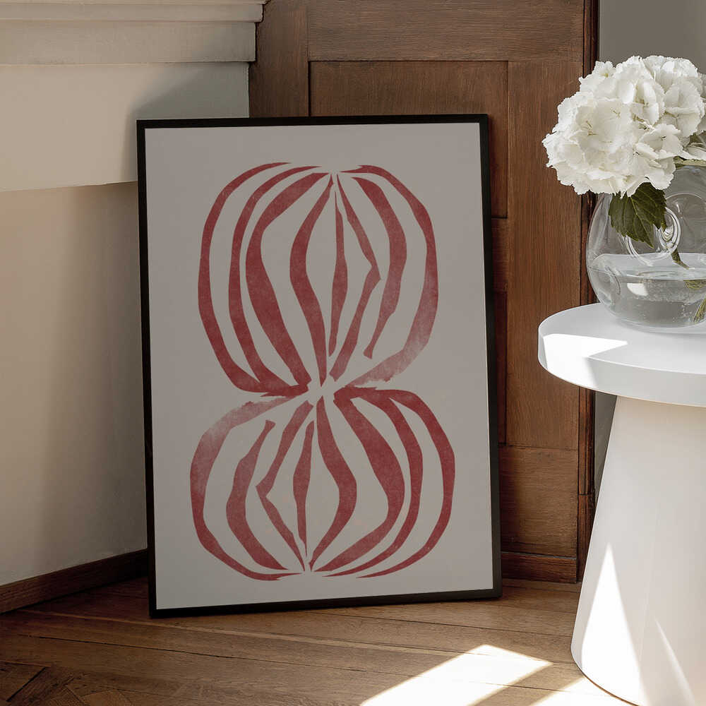 Tabloul înramat „Crimson Echoforms”, creat de THE MIUUS STUDIO, este disponibil în mai multe dimensiuni, cu ramă neagră, albă sau din lemn natur. Se potrivește perfect în orice încăpere.