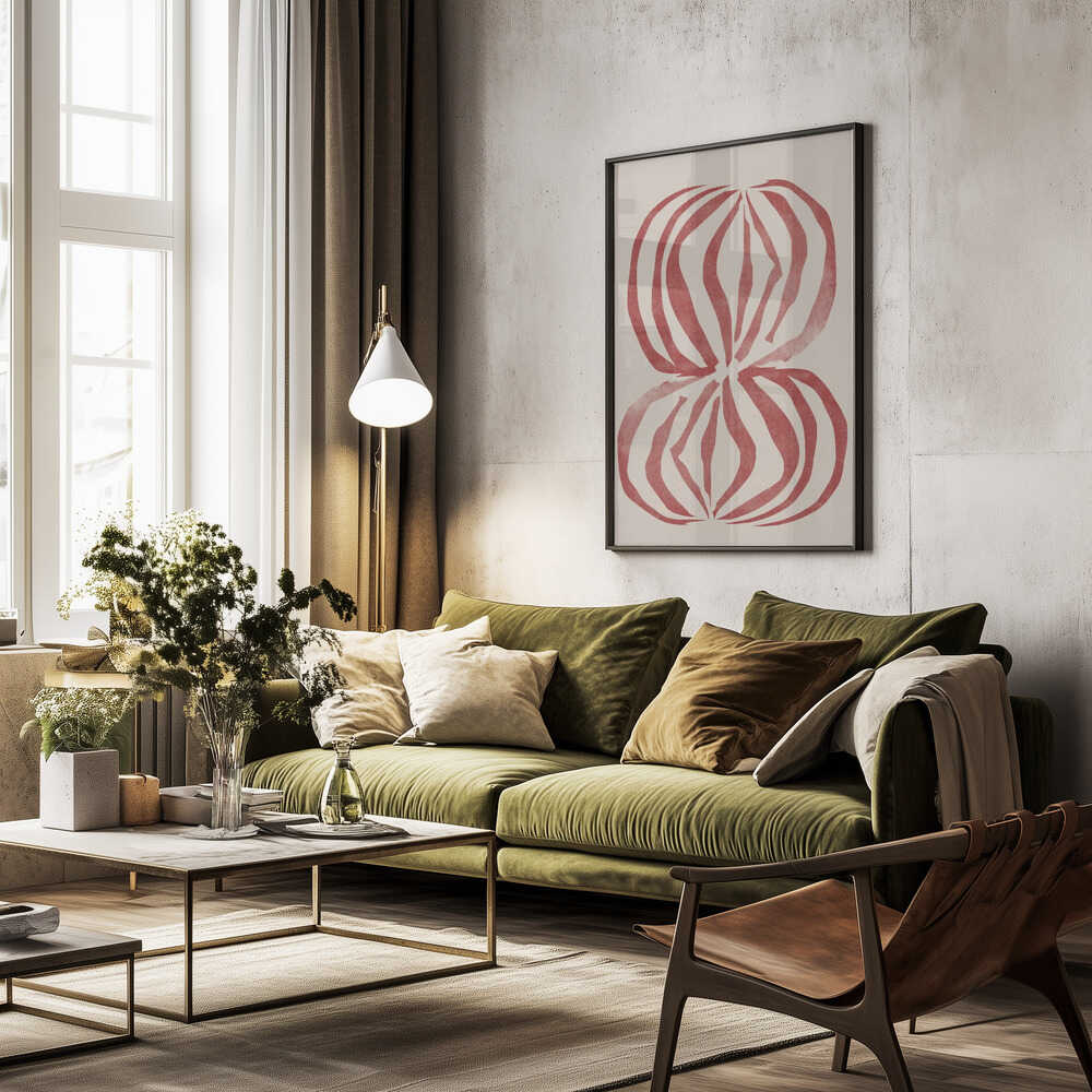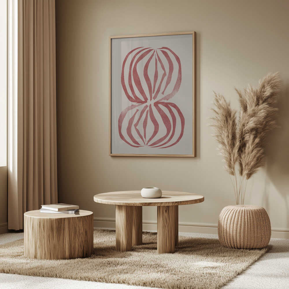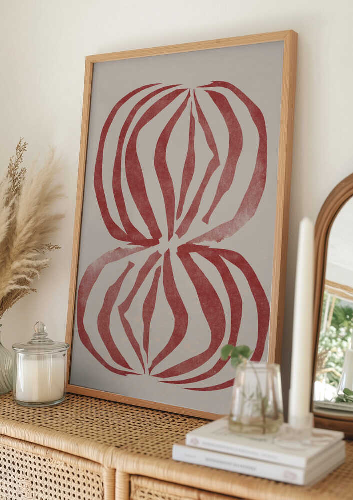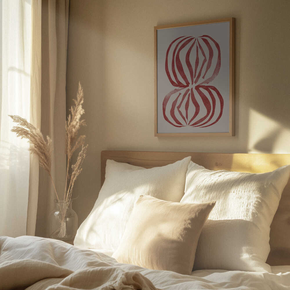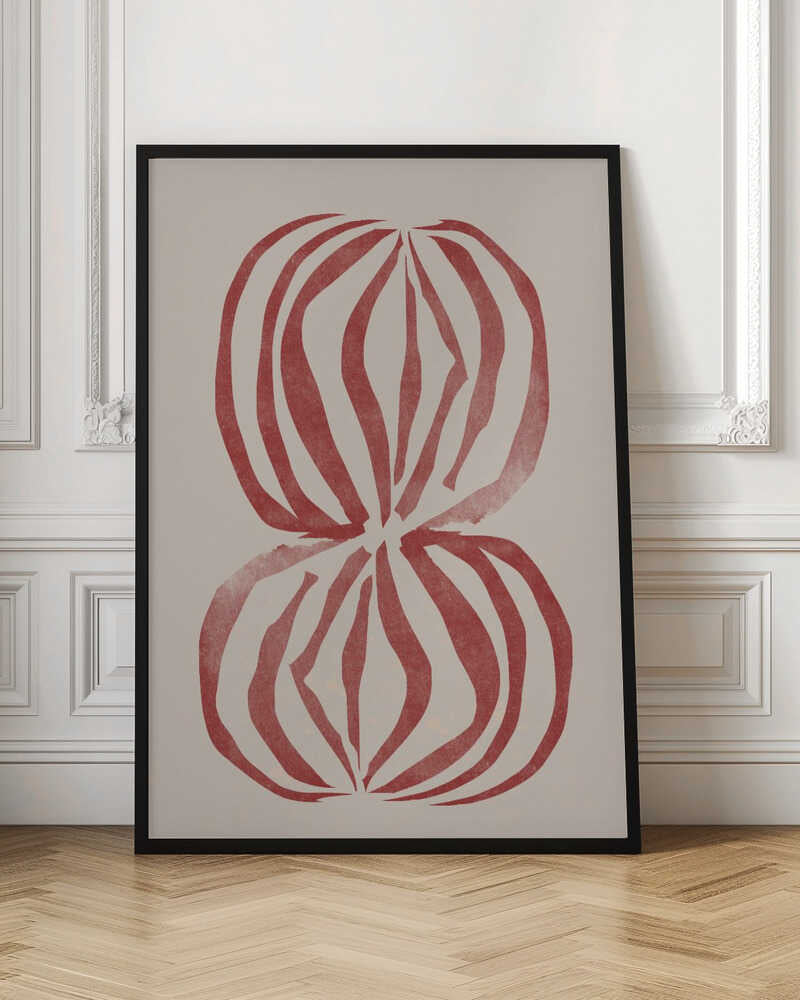 Tabloul înramat „Crimson Echoforms”, creat de THE MIUUS STUDIO, este disponibil în mai multe dimensiuni, cu ramă neagră, albă sau din lemn natur. Se potrivește perfect în orice încăpere.