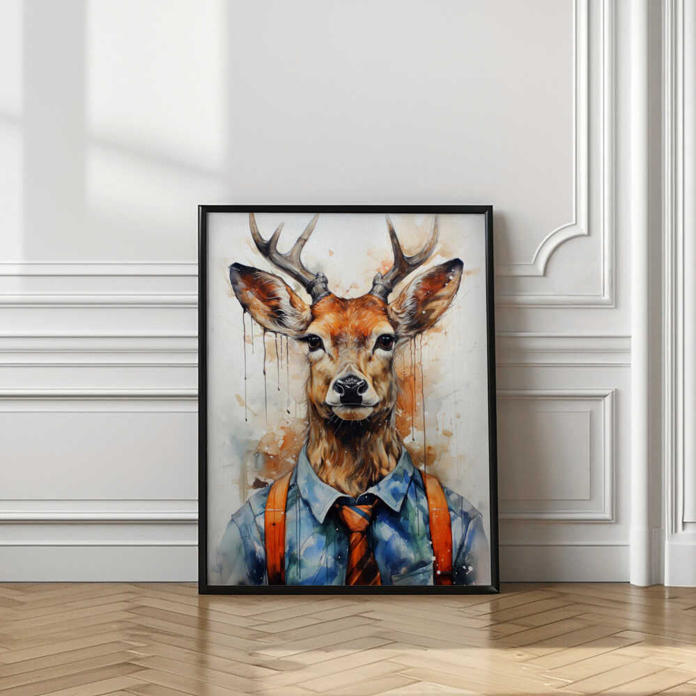 Tablou înramat „Deer Watercolor Animal Art (1)” de Justyna Jaszke