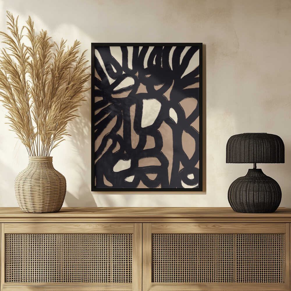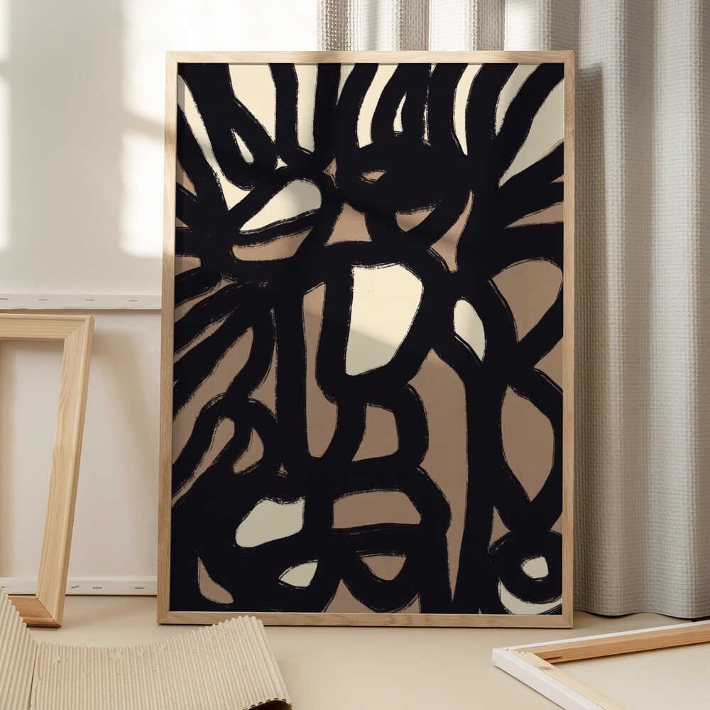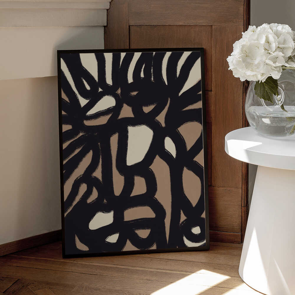 Tabloul înramat „Dynamic Interplay Of Shapes”, creat de Little Dean, este disponibil în mai multe dimensiuni, cu ramă neagră, albă sau din lemn natur. Se potrivește perfect în orice încăpere.