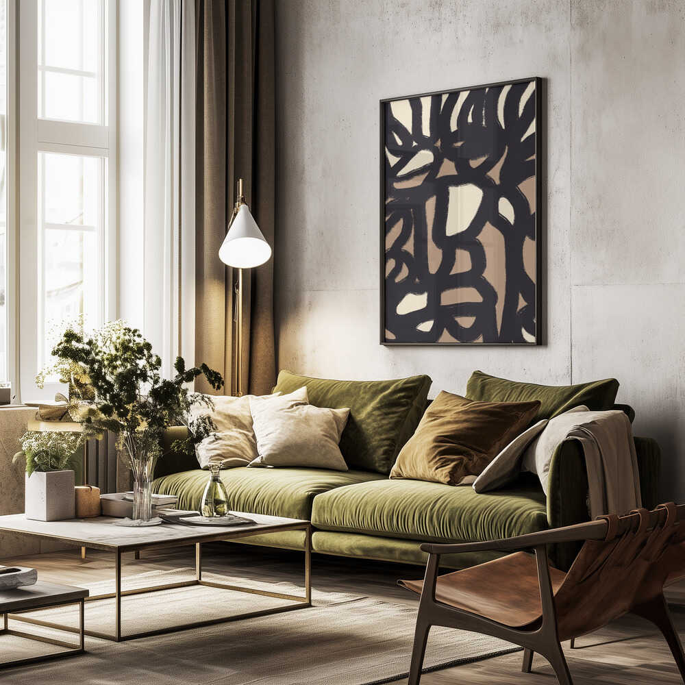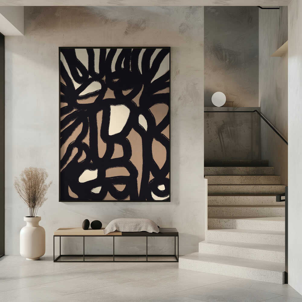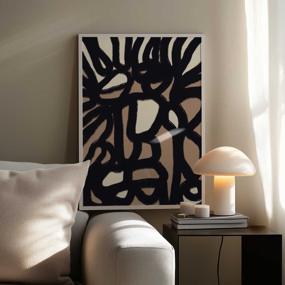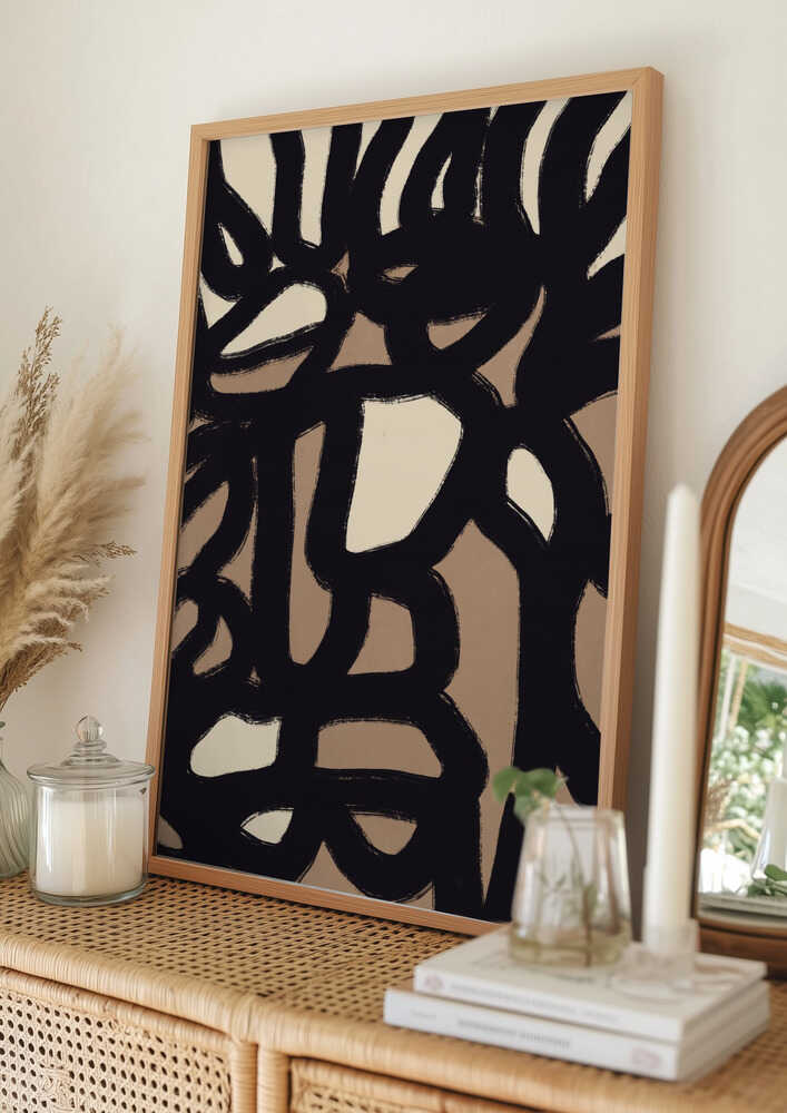 Tabloul înramat „Dynamic Interplay Of Shapes”, creat de Little Dean, este disponibil în mai multe dimensiuni, cu ramă neagră, albă sau din lemn natur. Se potrivește perfect în orice încăpere.