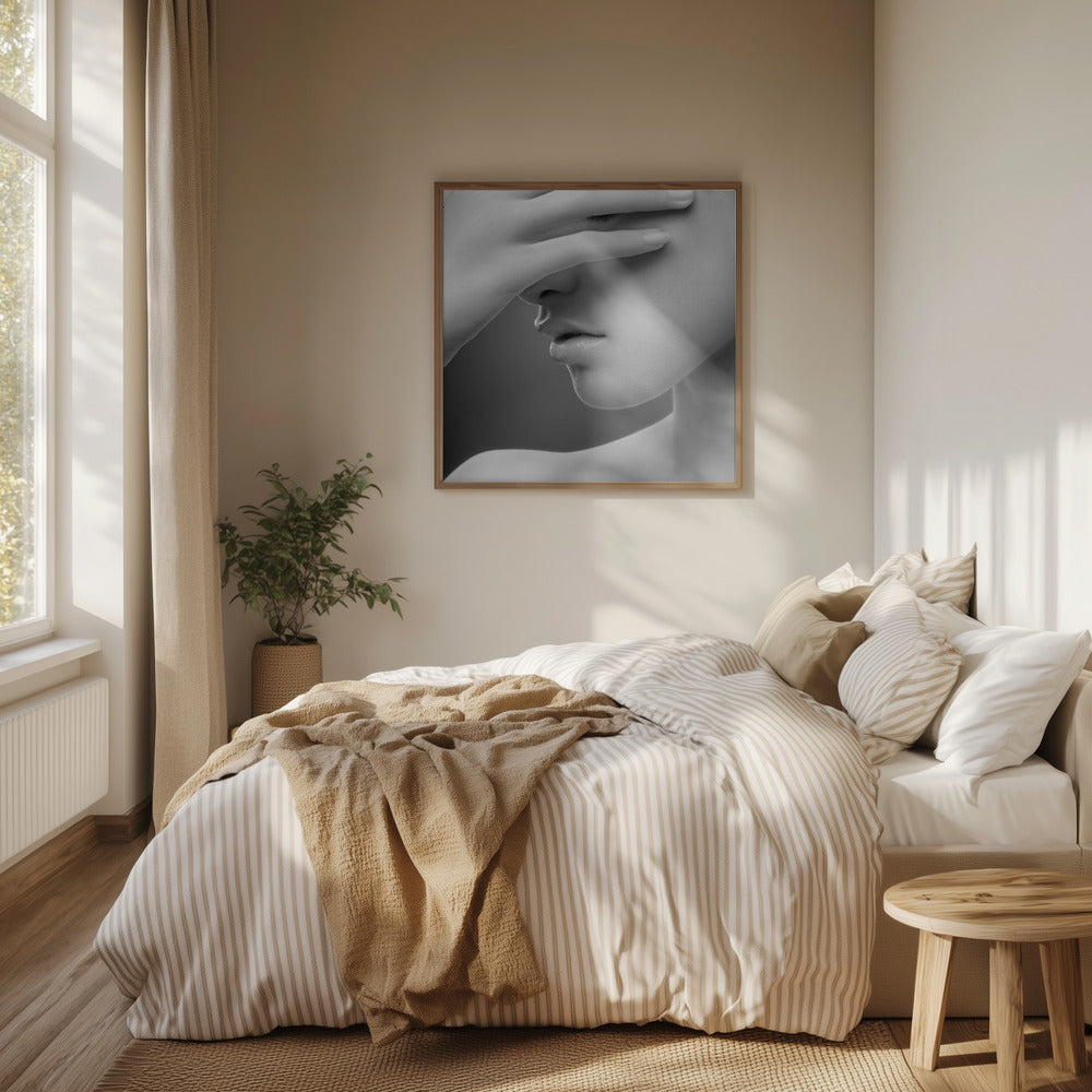 Tabloul înramat „E”, creat de Widi Hardhanu, este disponibil în mai multe dimensiuni, cu ramă neagră, albă sau din lemn natur. Se potrivește perfect în orice încăpere.