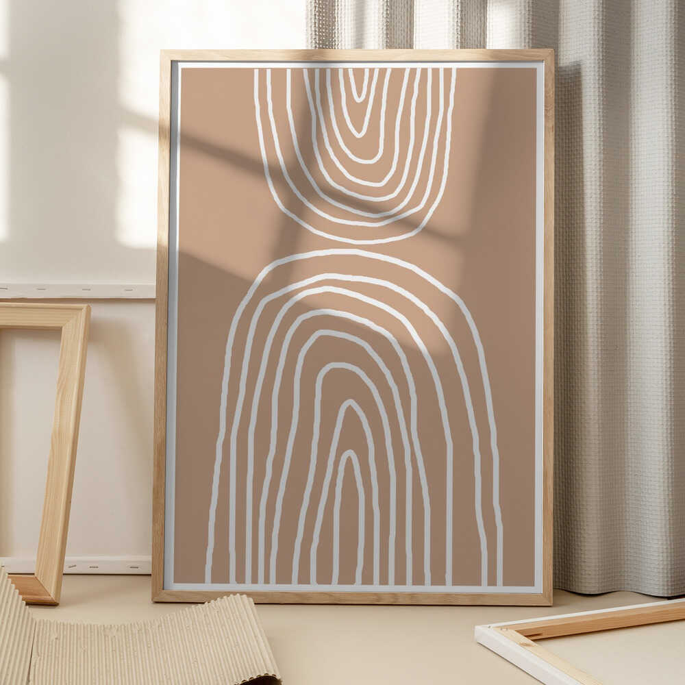Tabloul înramat „Earthy Layers Harmony”, creat de THE MIUUS STUDIO, este disponibil în mai multe dimensiuni, cu ramă neagră, albă sau din lemn natur. Se potrivește perfect în orice încăpere.
