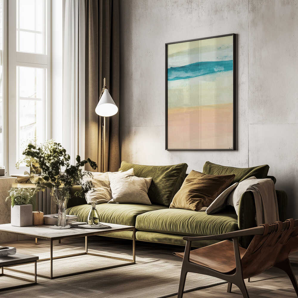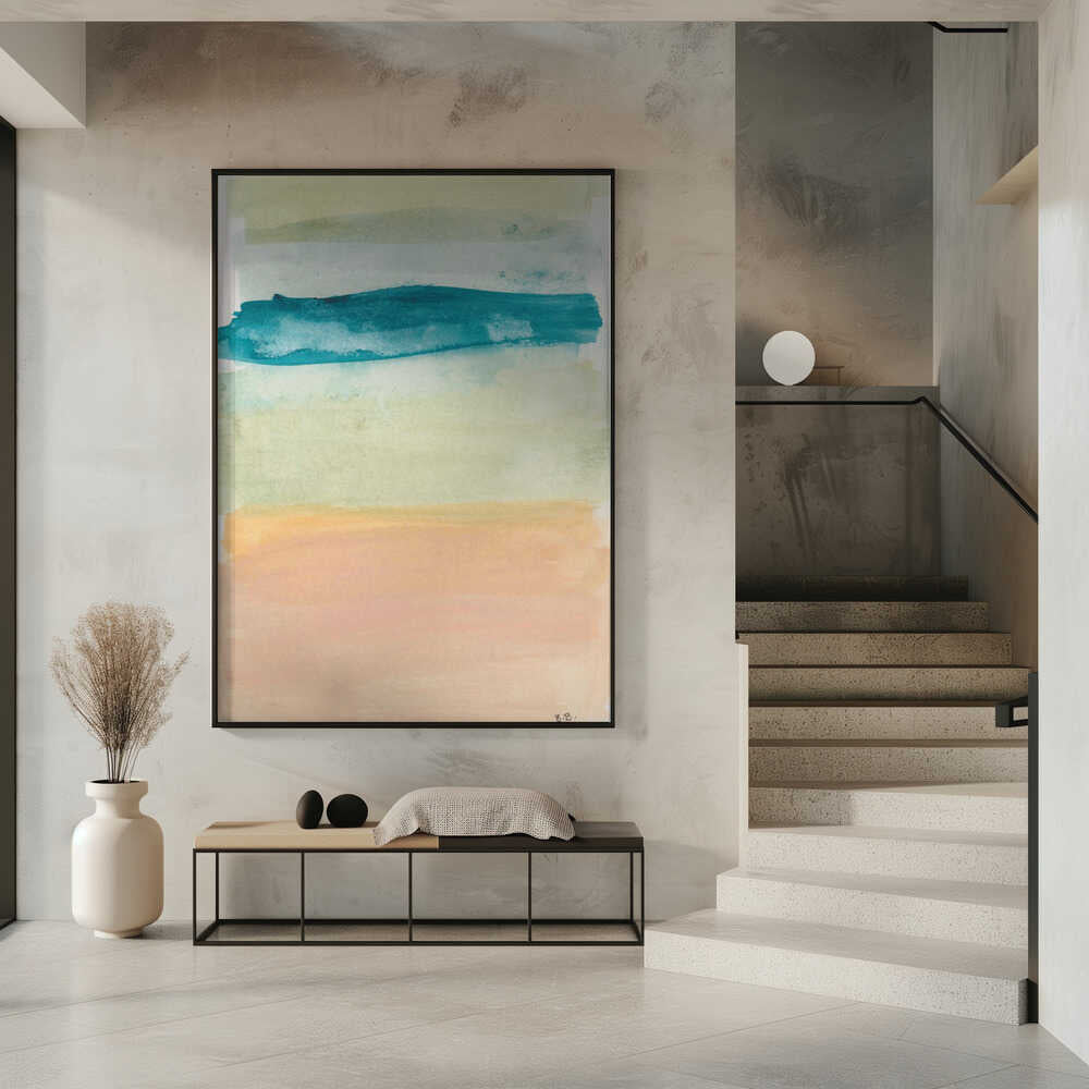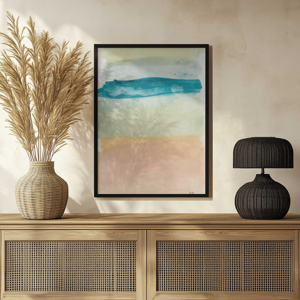 Tabloul înramat „Find Your Way 2”, creat de Bronwyn Baker, este disponibil în mai multe dimensiuni, cu ramă neagră, albă sau din lemn natur. Se potrivește perfect în orice încăpere.