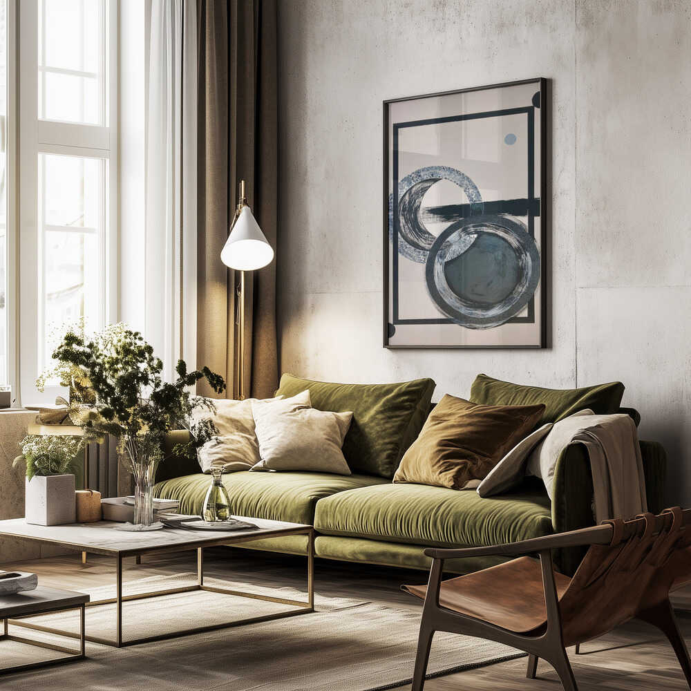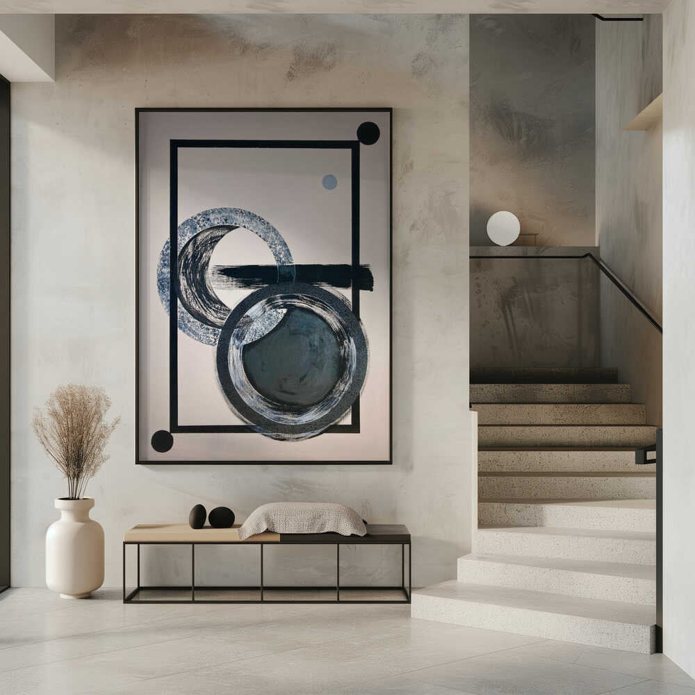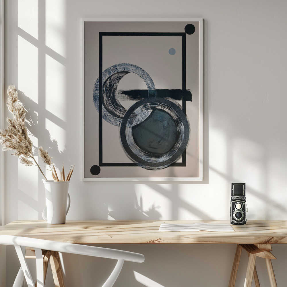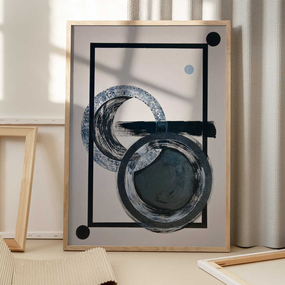 Tabloul înramat „Geometria Y Texturas 5”, creat de David Galan, este disponibil în mai multe dimensiuni, cu ramă neagră, albă sau din lemn natur. Se potrivește perfect în orice încăpere.