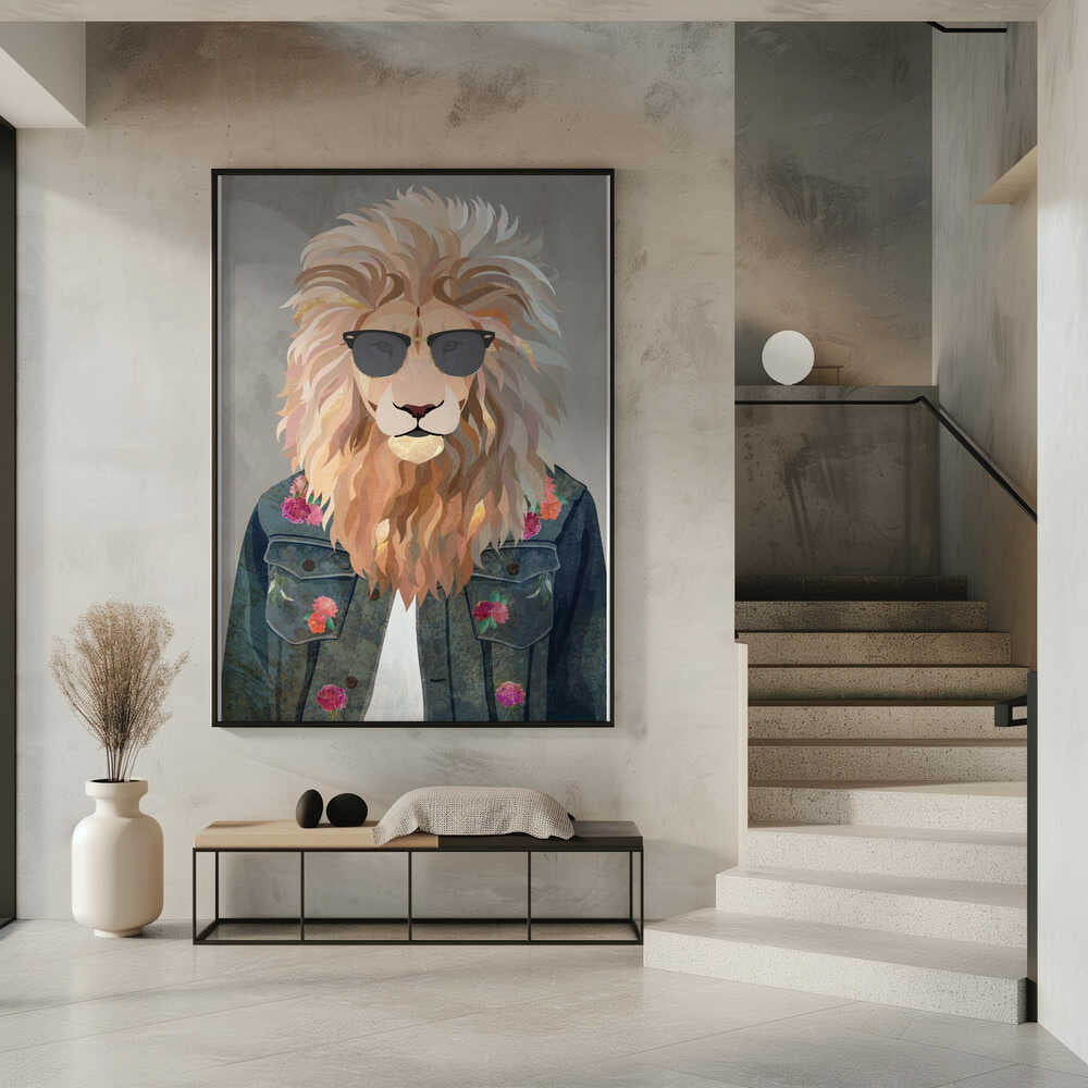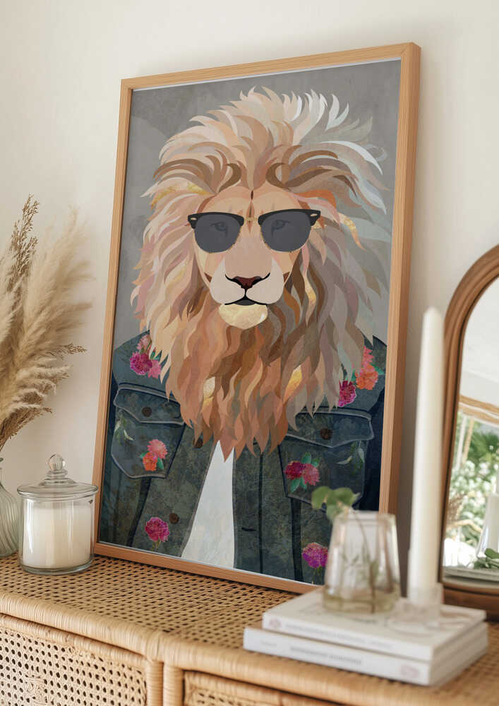 Tabloul înramat „Golden fashion lion 4”, creat de Sarah Manovski, este disponibil în mai multe dimensiuni, cu ramă neagră, albă sau din lemn natur. Se potrivește perfect în orice încăpere.