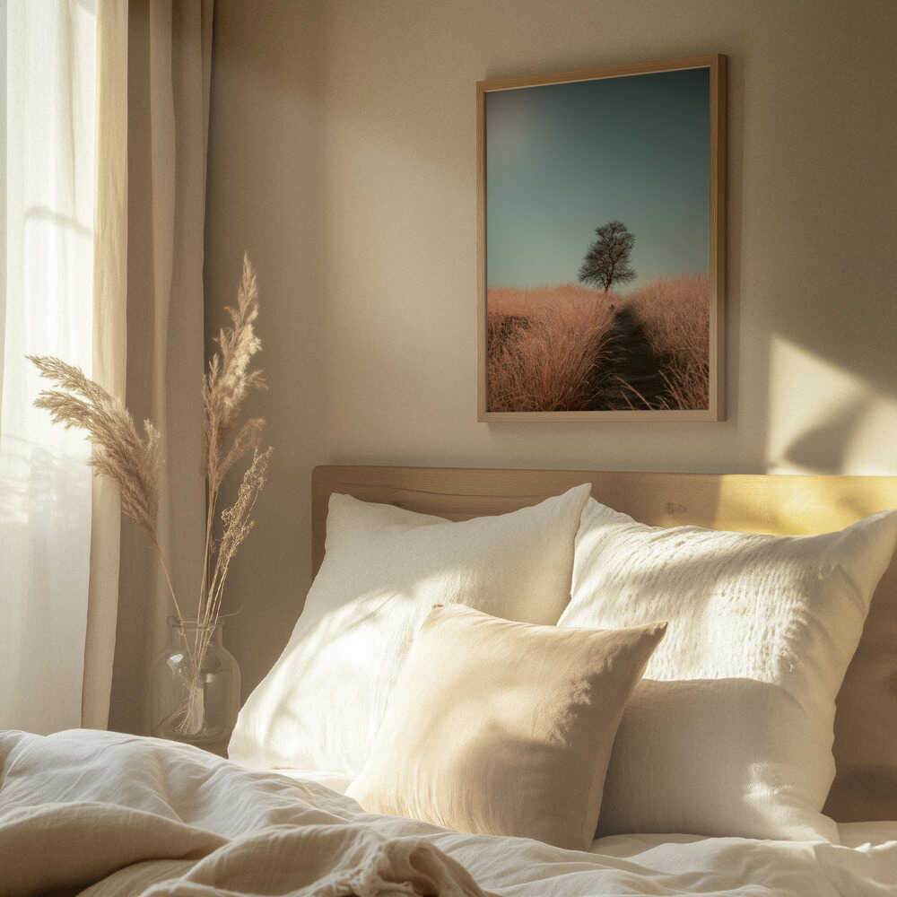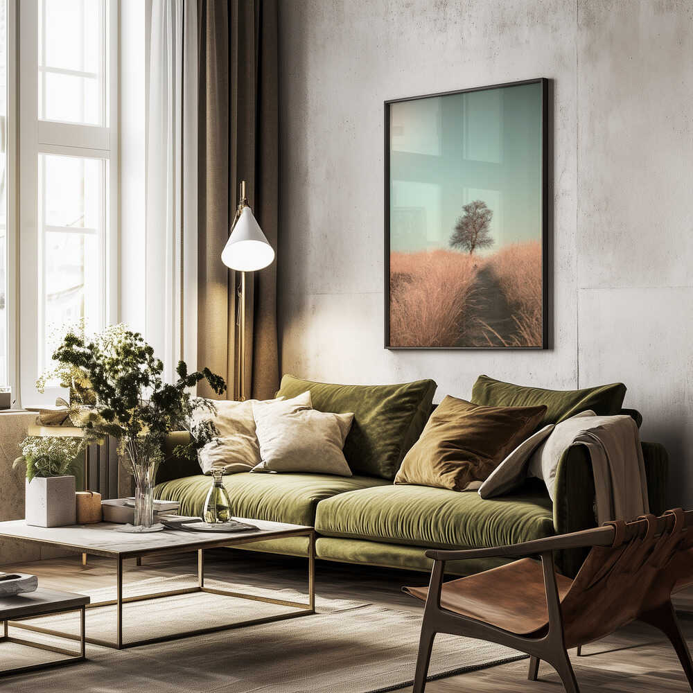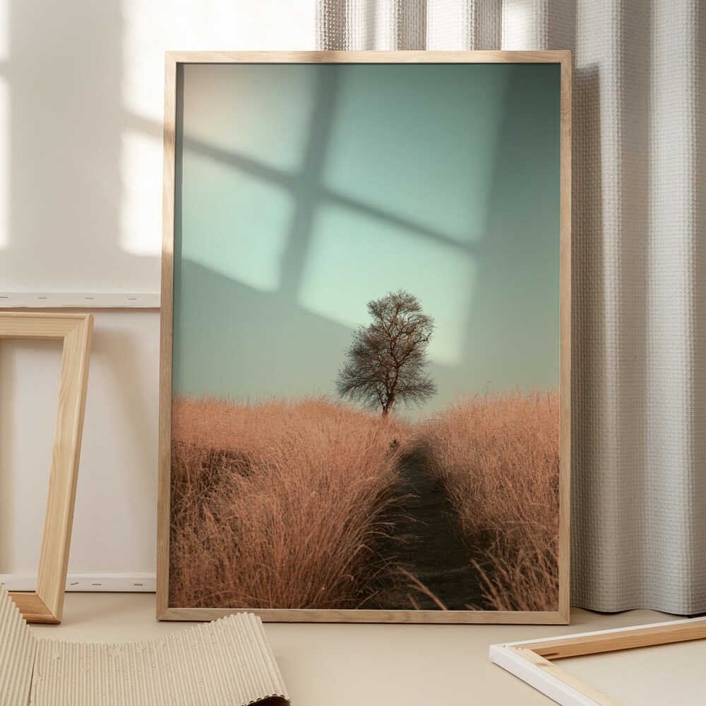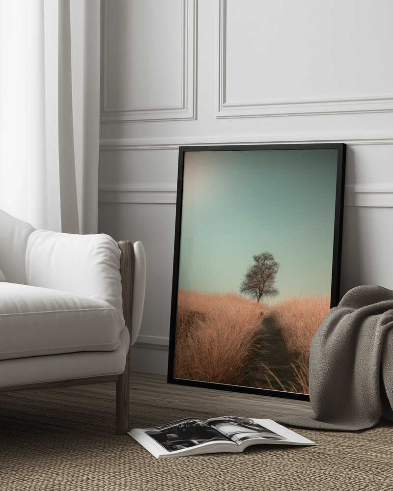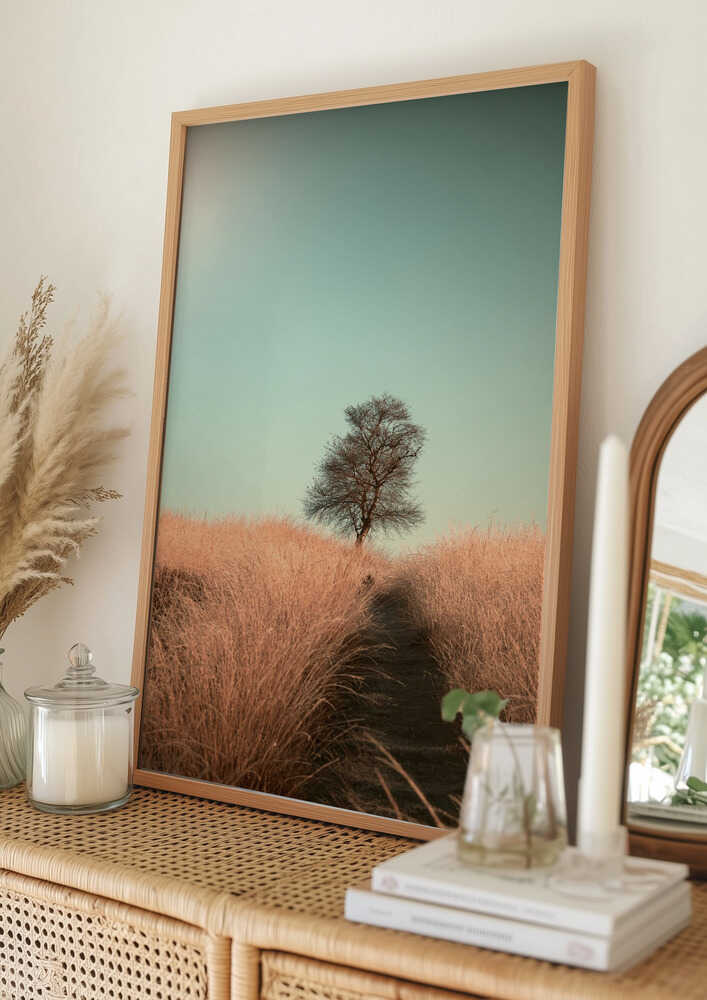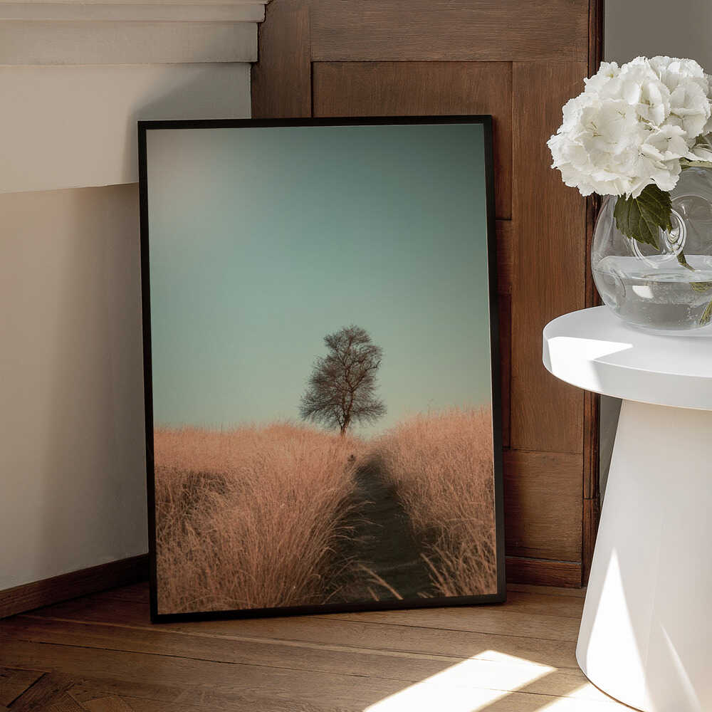 Tabloul înramat „Grass and Path”, creat de Jaap van den Helm, este disponibil în mai multe dimensiuni, cu ramă neagră, albă sau din lemn natur. Se potrivește perfect în orice încăpere.