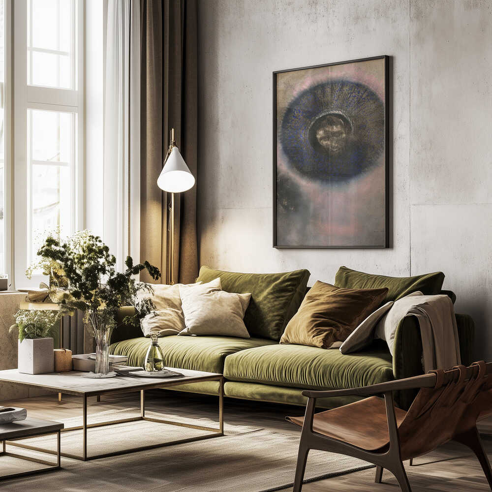 Tabloul înramat „Head Within an Aureole”, creat de Odilon Redon, este disponibil în mai multe dimensiuni, cu ramă neagră, albă sau din lemn natur. Se potrivește perfect în orice încăpere.