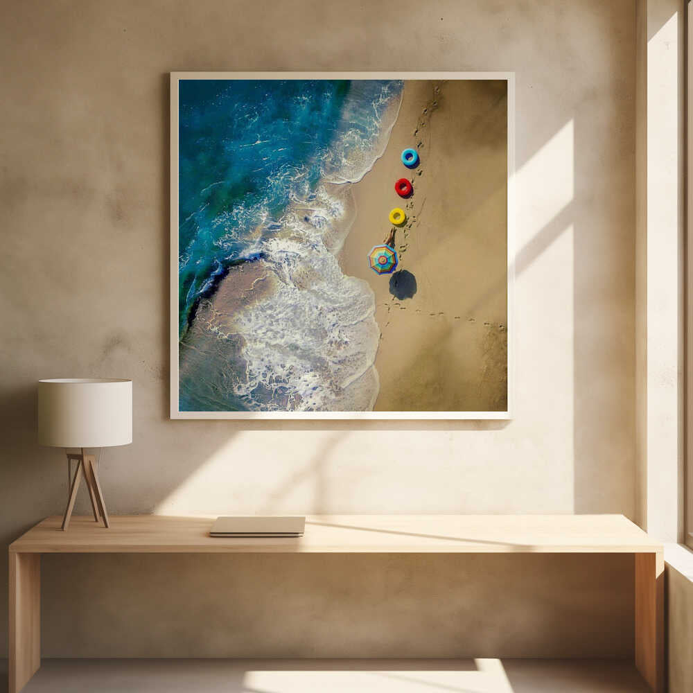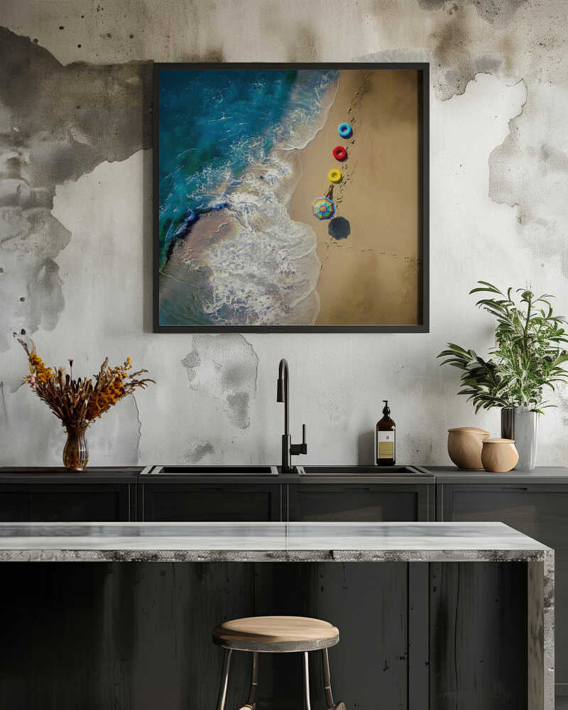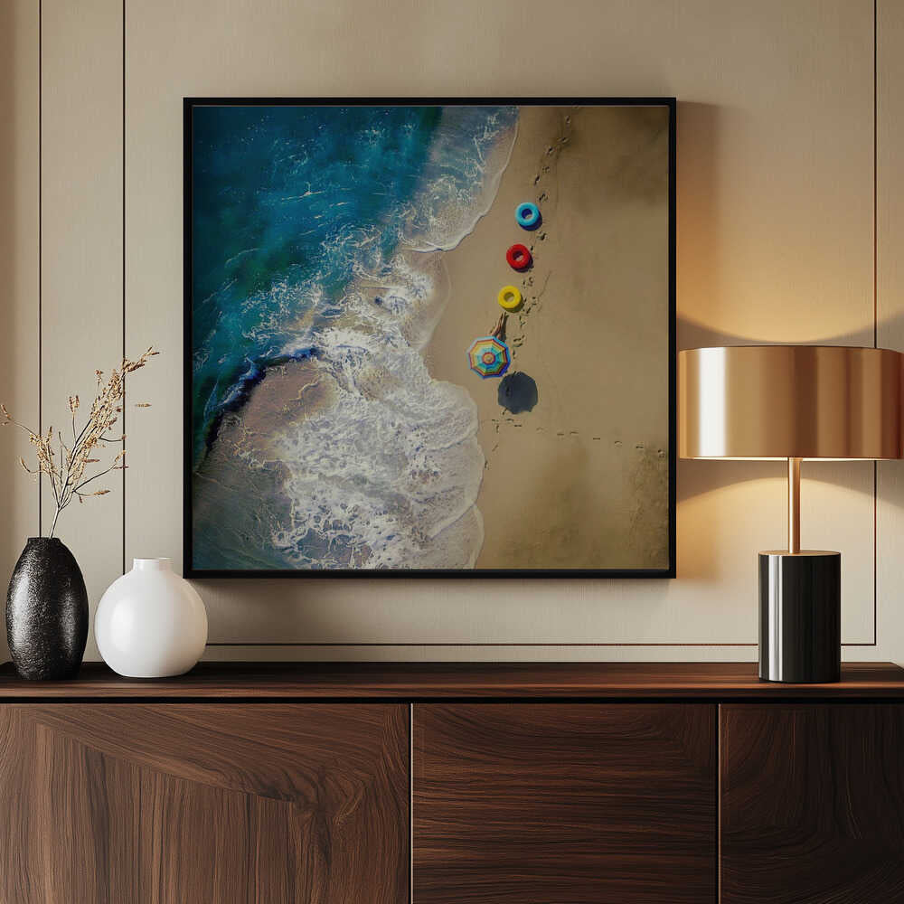 Tabloul înramat „hi summer!”, creat de ambra, este disponibil în mai multe dimensiuni, cu ramă neagră, albă sau din lemn natur. Se potrivește perfect în orice încăpere.
