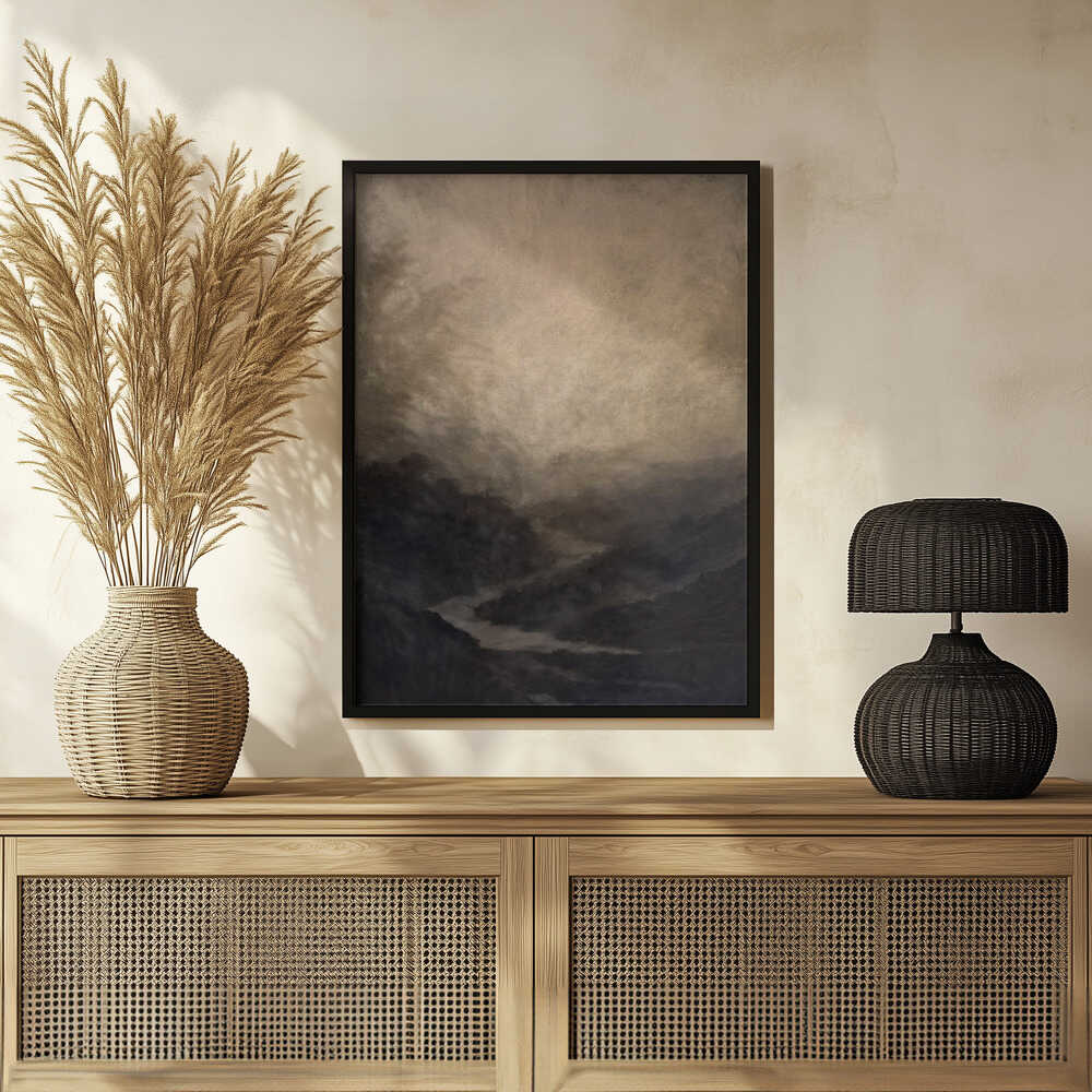 Tabloul înramat „Highland River”, creat de Dan Hobday, este disponibil în mai multe dimensiuni, cu ramă neagră, albă sau din lemn natur. Se potrivește perfect în orice încăpere.