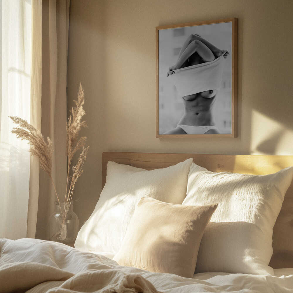 Tabloul înramat „Hot [Simona]”, creat de Martin Krystynek MQEP, este disponibil în mai multe dimensiuni, cu ramă neagră, albă sau din lemn natur. Se potrivește perfect în orice încăpere.