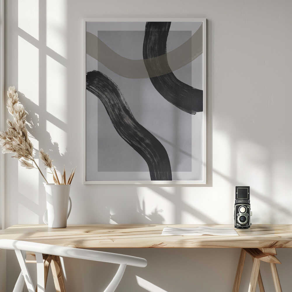 Tabloul înramat „Lines and Shapes 2”, creat de Mareike Böhmer, este disponibil în mai multe dimensiuni, cu ramă neagră, albă sau din lemn natur. Se potrivește perfect în orice încăpere.