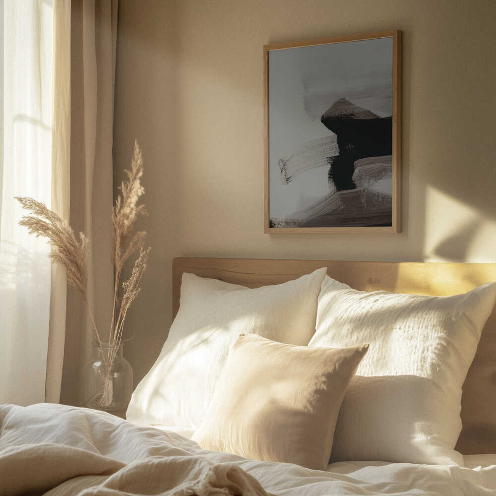 Tabloul înramat „Mellow No1”, creat de Dan Hobday, este disponibil în mai multe dimensiuni, cu ramă neagră, albă sau din lemn natur. Se potrivește perfect în orice încăpere.