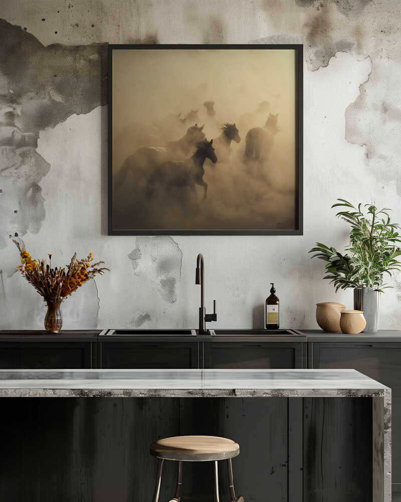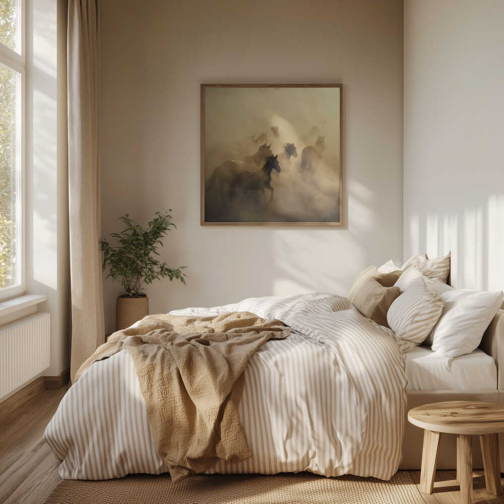 Tabloul înramat „migration of horses”, creat de Hüseyin Taşkın, este disponibil în mai multe dimensiuni, cu ramă neagră, albă sau din lemn natur. Se potrivește perfect în orice încăpere.