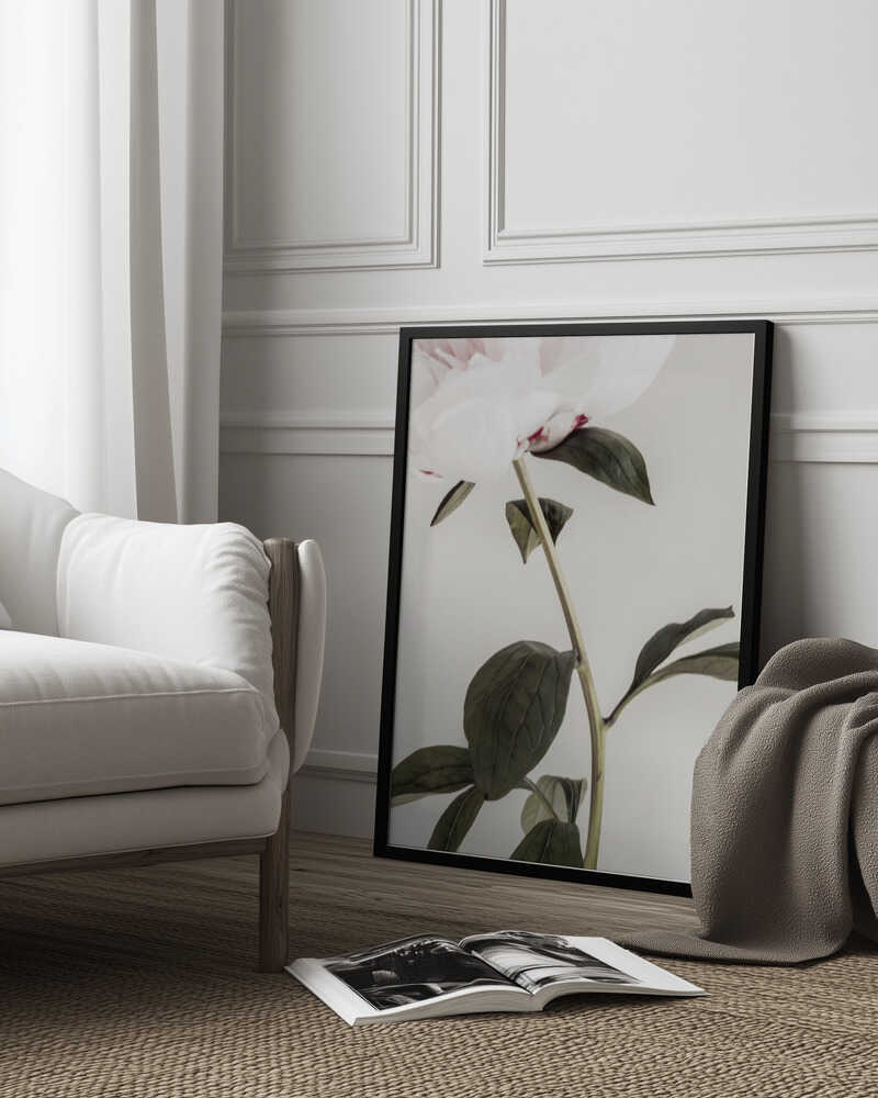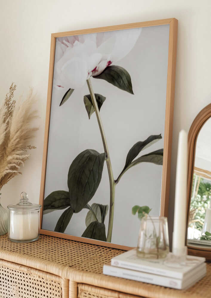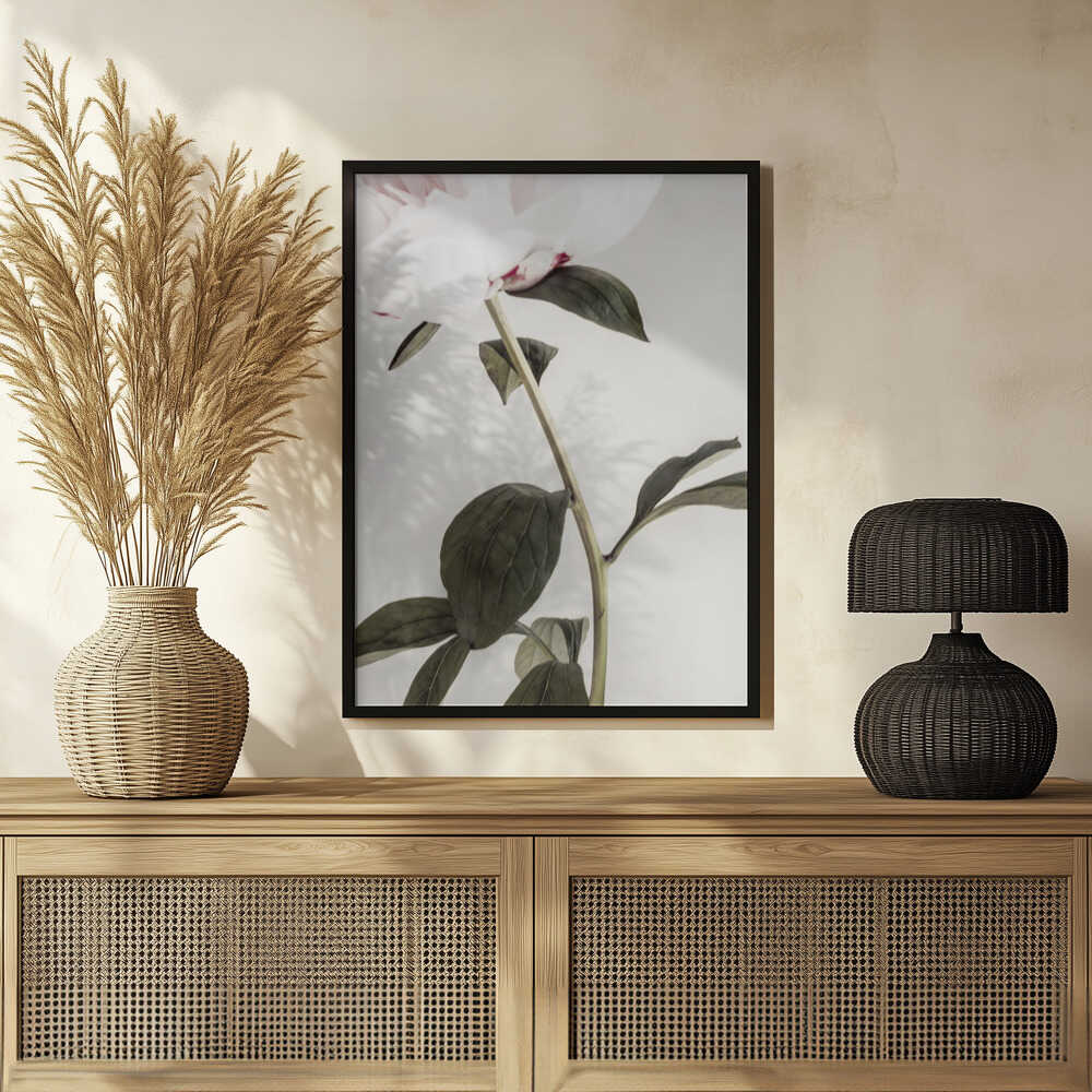 Tabloul înramat „Peony 09”, creat de Pictufy Studio III, este disponibil în mai multe dimensiuni, cu ramă neagră, albă sau din lemn natur. Se potrivește perfect în orice încăpere.