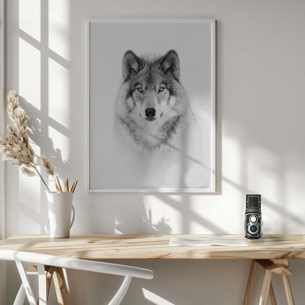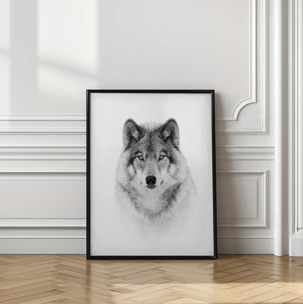 Tabloul înramat „Portrait of a Timber Wolf”, creat de Jim Cumming, este disponibil în mai multe dimensiuni, cu ramă neagră, albă sau din lemn natur. Se potrivește perfect în orice încăpere.