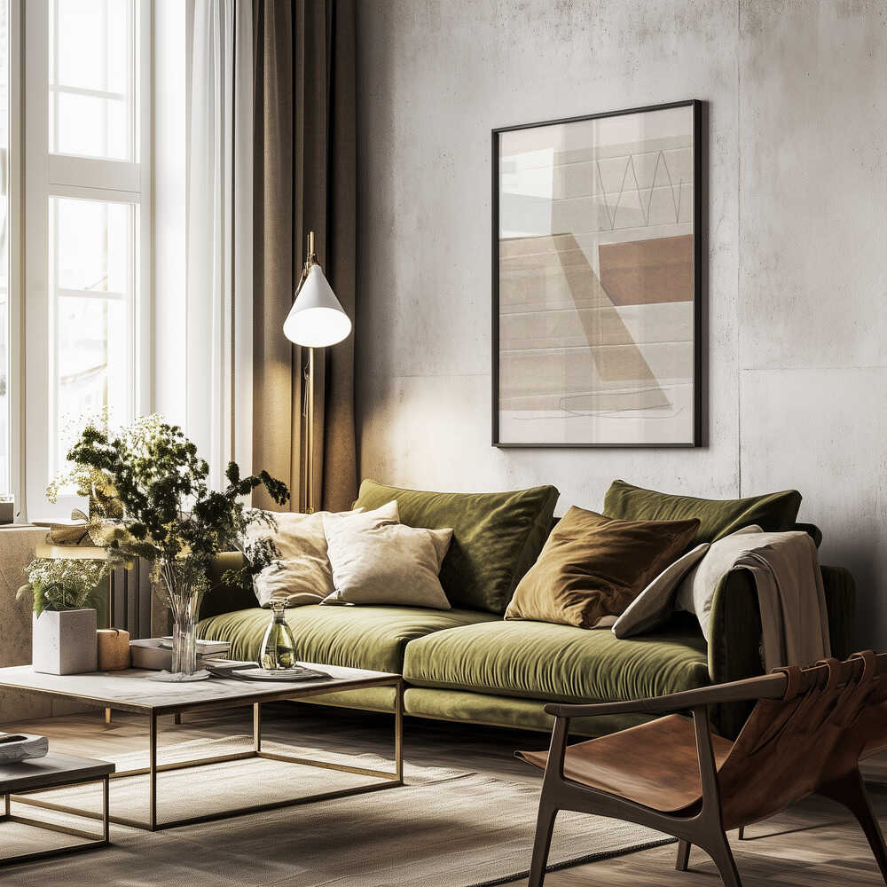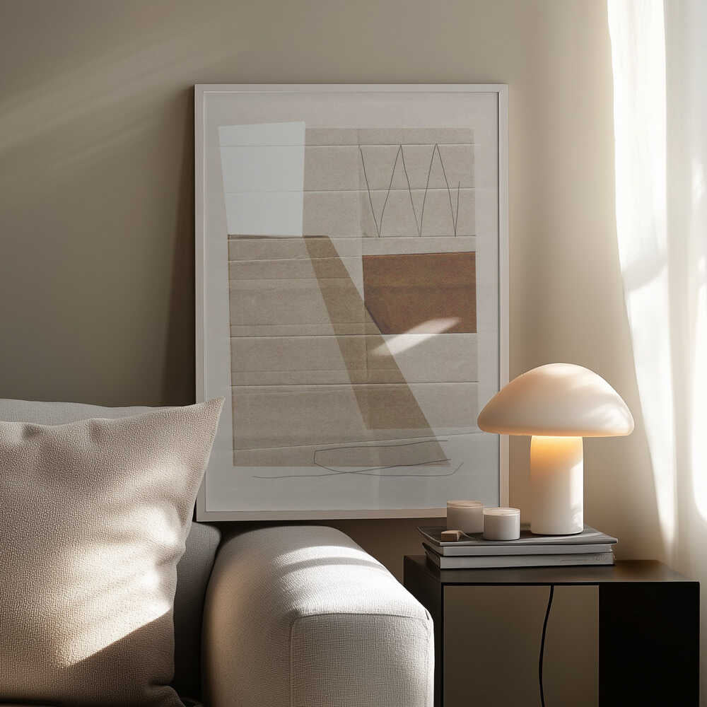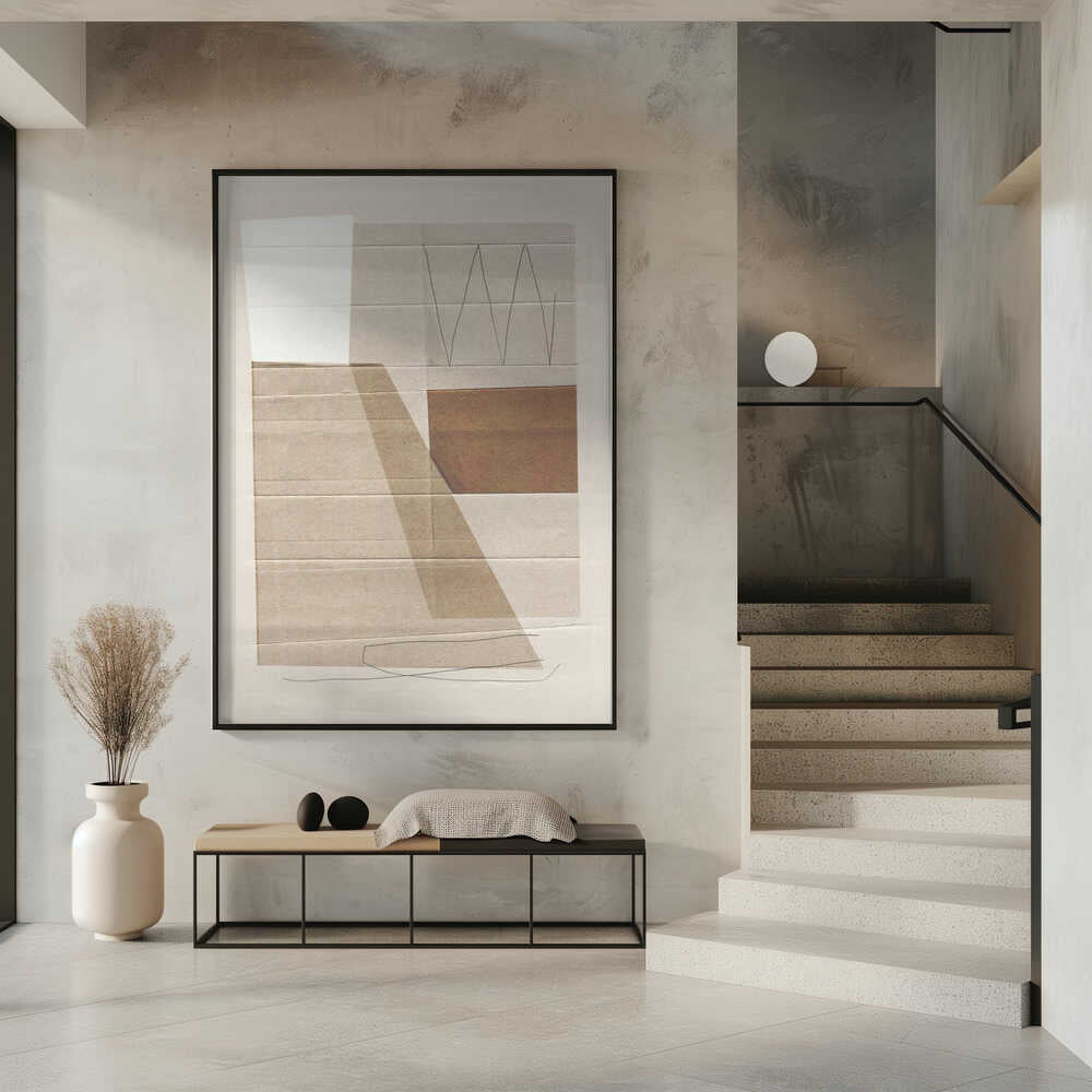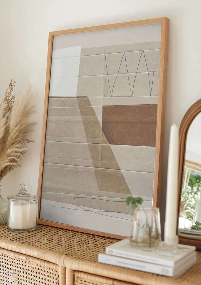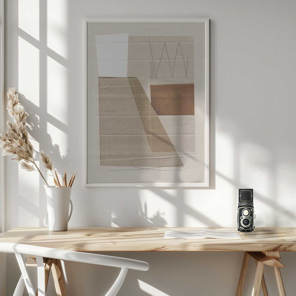 Tabloul înramat „Scheme Abstract”, creat de Dan Hobday, este disponibil în mai multe dimensiuni, cu ramă neagră, albă sau din lemn natur. Se potrivește perfect în orice încăpere.