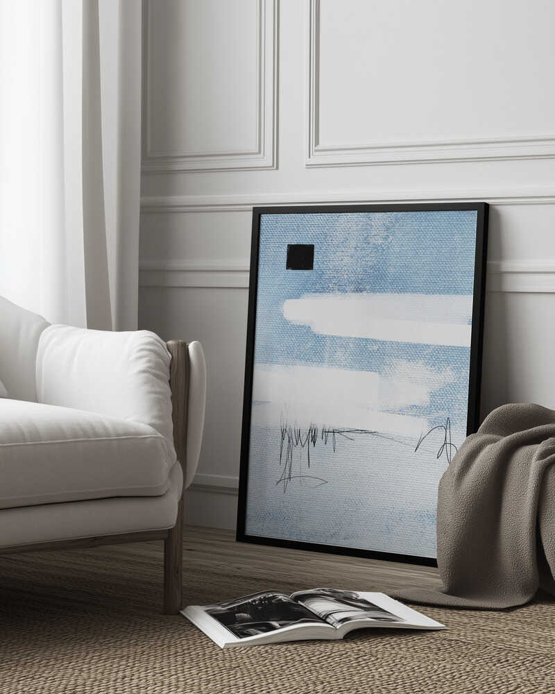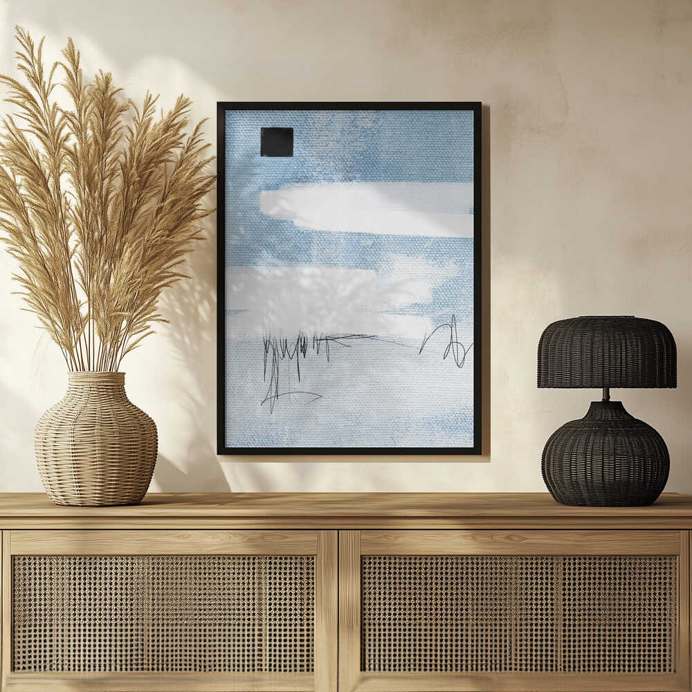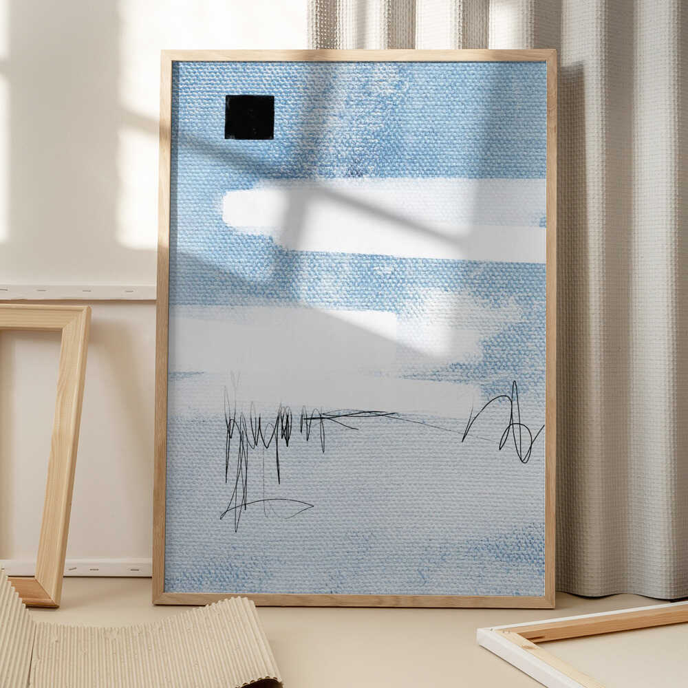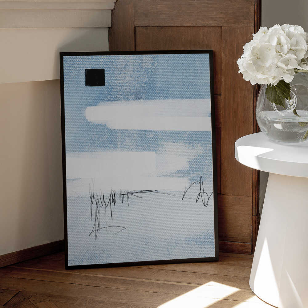 Tabloul înramat „Skybound Whispers”, creat de uplusmestudio, este disponibil în mai multe dimensiuni, cu ramă neagră, albă sau din lemn natur. Se potrivește perfect în orice încăpere.