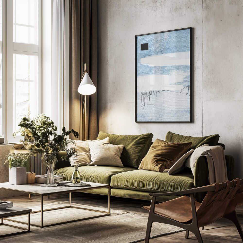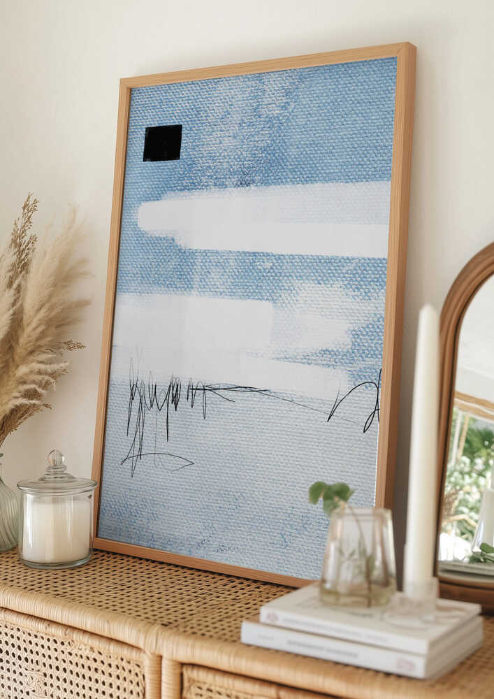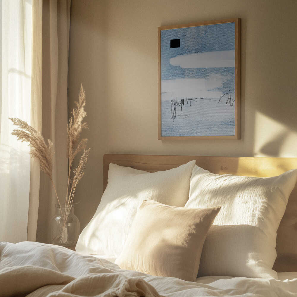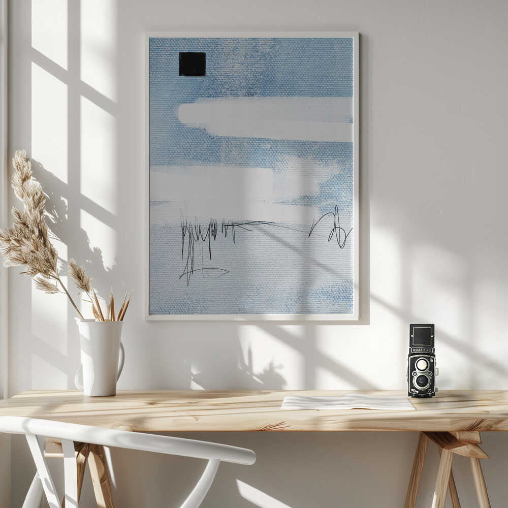 Tabloul înramat „Skybound Whispers”, creat de uplusmestudio, este disponibil în mai multe dimensiuni, cu ramă neagră, albă sau din lemn natur. Se potrivește perfect în orice încăpere.
