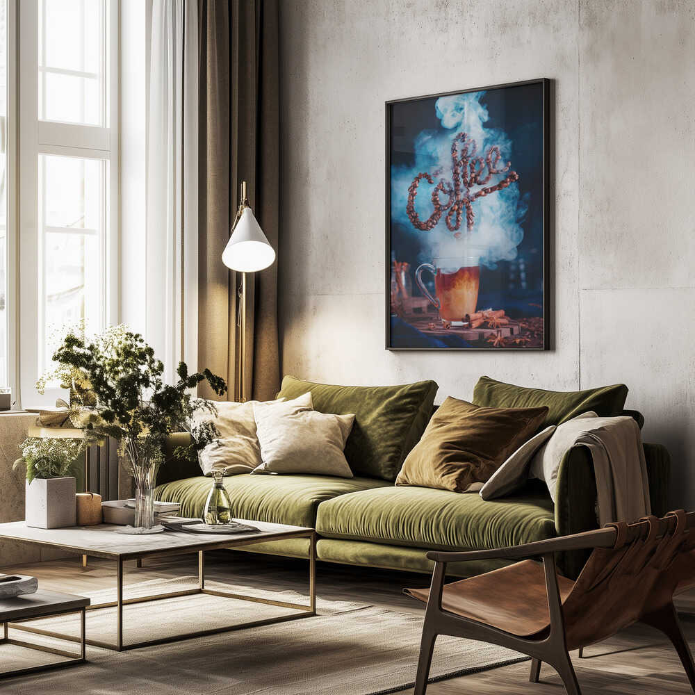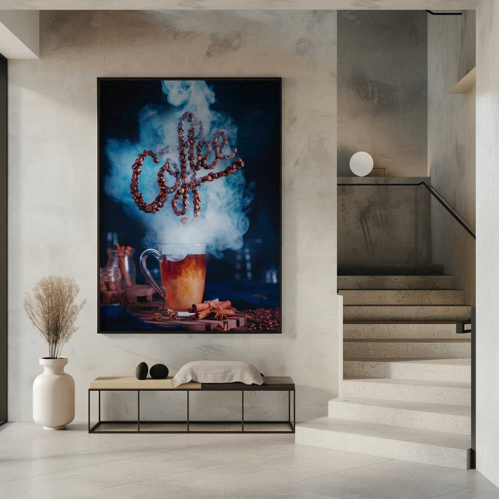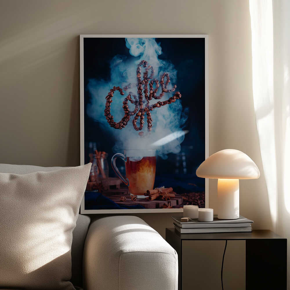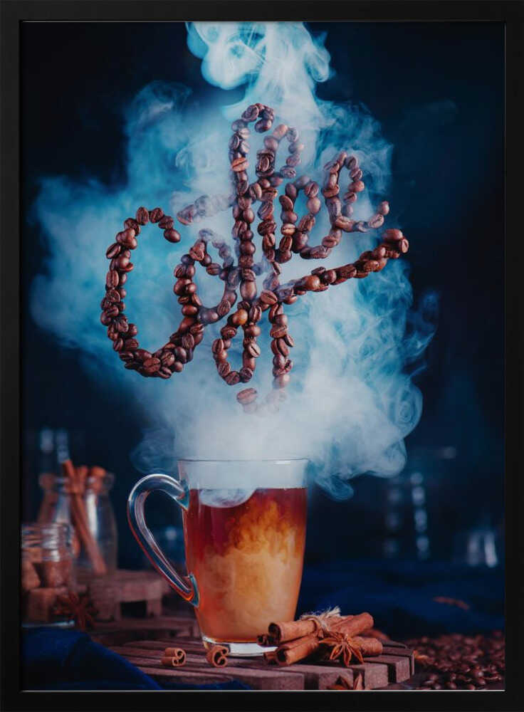 Tabloul înramat „Smell the coffee”, creat de Dina Belenko, este disponibil în mai multe dimensiuni, cu ramă neagră, albă sau din lemn natur. Se potrivește perfect în orice încăpere.