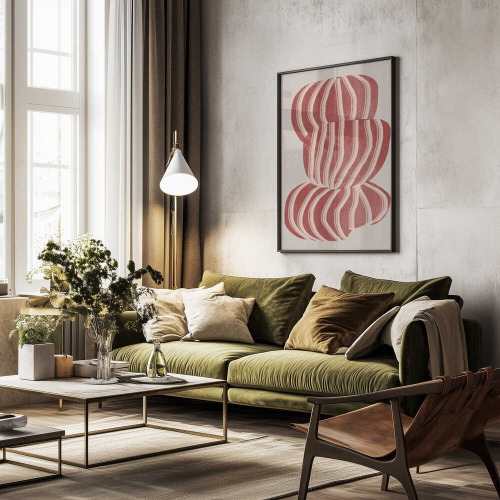 Tabloul înramat „Striped Balance”, creat de THE MIUUS STUDIO, este disponibil în mai multe dimensiuni, cu ramă neagră, albă sau din lemn natur. Se potrivește perfect în orice încăpere.