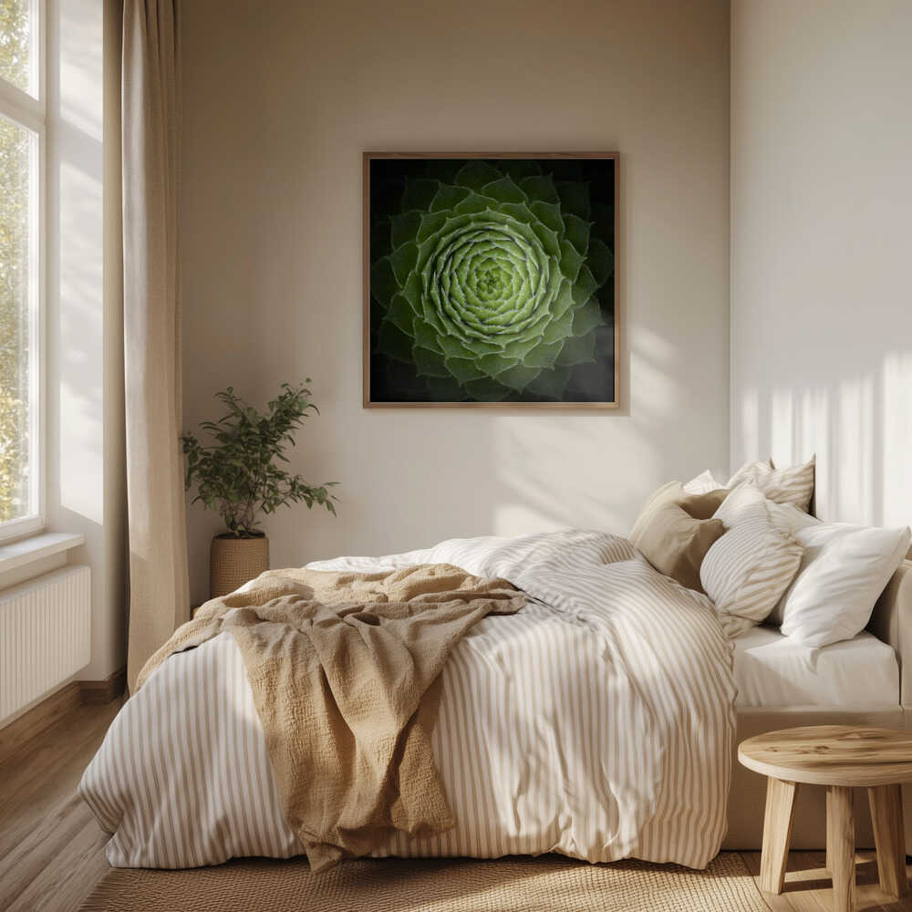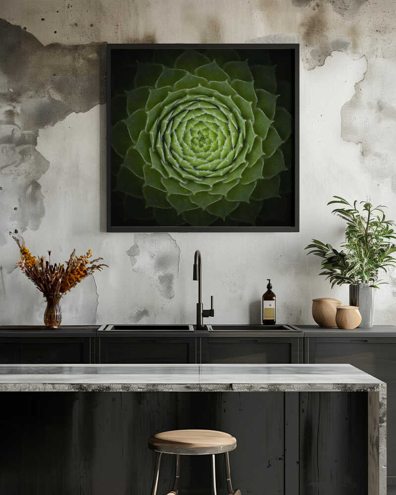 Tabloul înramat „Succulent”, creat de Victor Mozqueda, este disponibil în mai multe dimensiuni, cu ramă neagră, albă sau din lemn natur. Se potrivește perfect în orice încăpere.